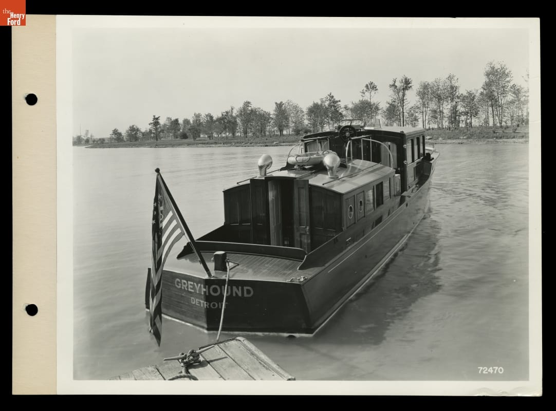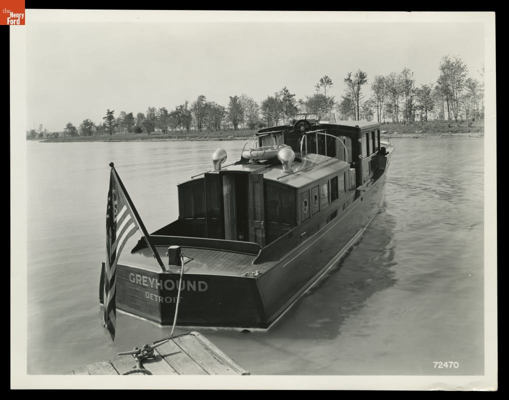 Edsel Ford enjoyed boating. He owned an impressive collection of watercraft from large pleasure yachts to powerboats. In 1920, Edsel purchased the 58-foot, mahogany-hulled yacht Greyhound. According to a popular boating publication from that time, among the newly acquired pleasure craft's uses was to transport Edsel and his family to and from a new Ford summer retreat in Harbor Beach, Michigan.
