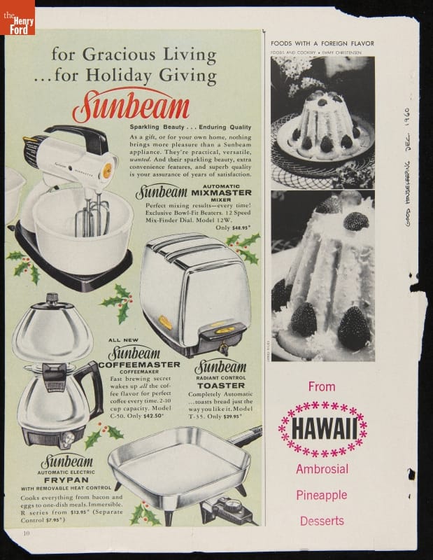 Sunbeam Appliances Advertisement, 1960, "For Gracious Living... for Holiday Giving"