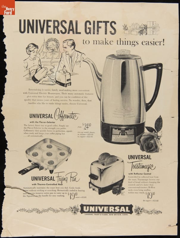 Universal Appliances Advertisement, circa 1956, "Universal Gifts to Make Things Easier"
