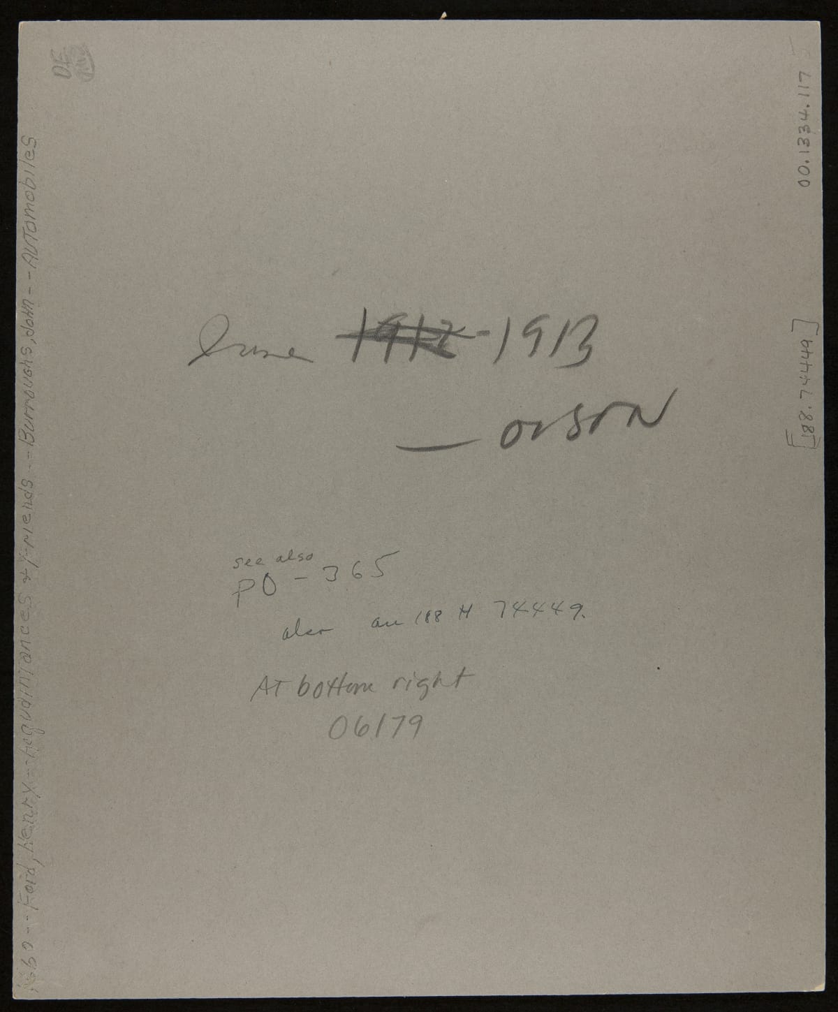 Handwritten in ink on lower right front corner: 06179