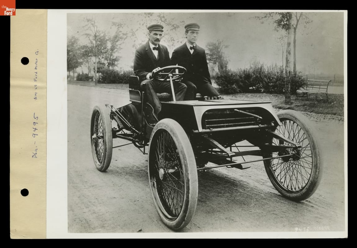 Henry Ford and Oliver Barthel Driving the Ford Sweepstakes Racer on West Grand Boulevard, Detroit, Michigan, August 1901