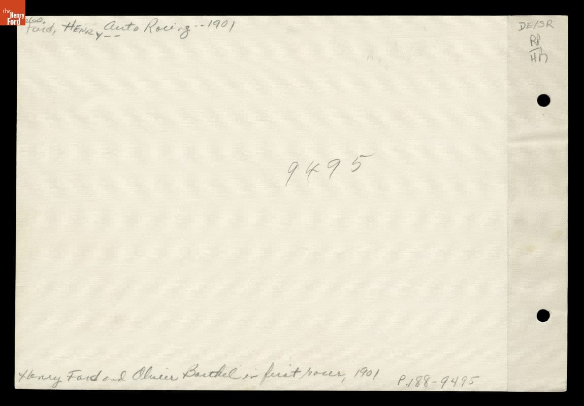 The 1901 "Sweepstakes" race car may have been Henry Ford's brainchild, but he had help bringing it into being. Oliver Barthel, a friend of Ford's and an engineer, was the car's principal designer. Years later Barthel recalled that, just before this photo was taken, "Sweepstakes" had hit 72 miles per hour in a trial run.