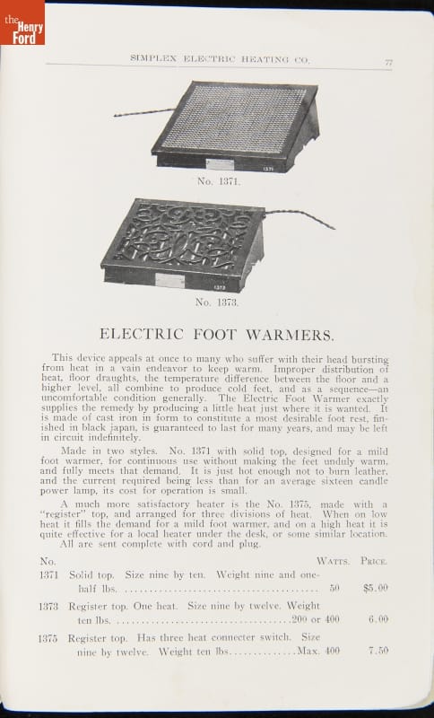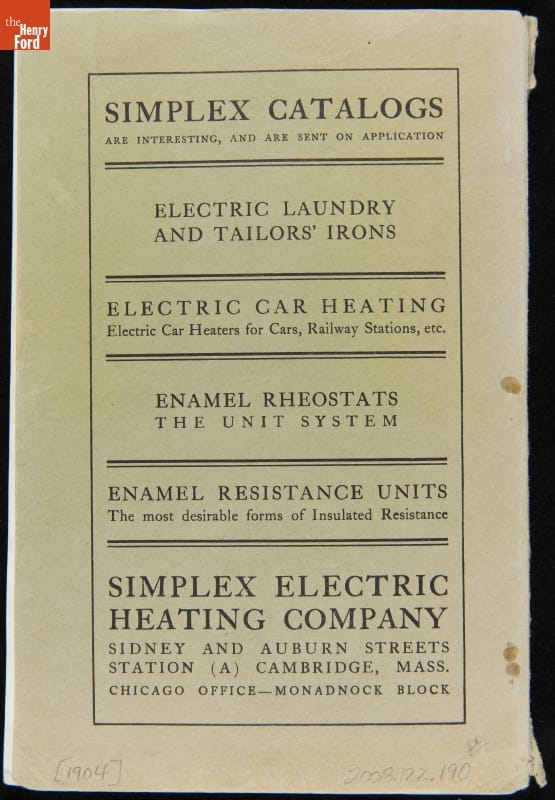 Catalog for the Simplex Electric Company, "Electric Heating," 1904