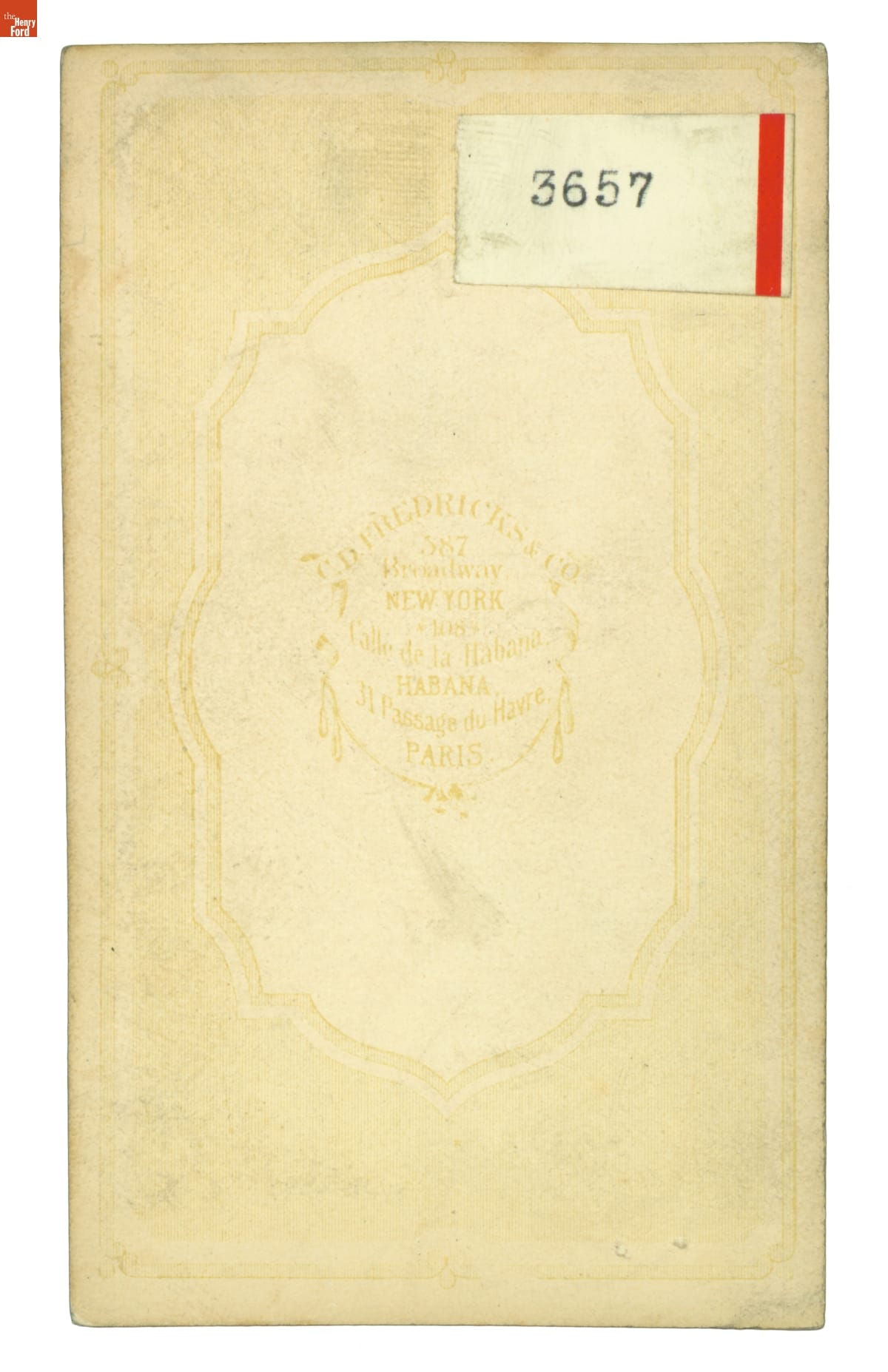 C.D. FREDRICKS & CO. / 387 / BROADWAY / NEW YORK / 108 / CALLO de HABANA / HAVANA / 31 PASSAGE du HAVRE / PARIS