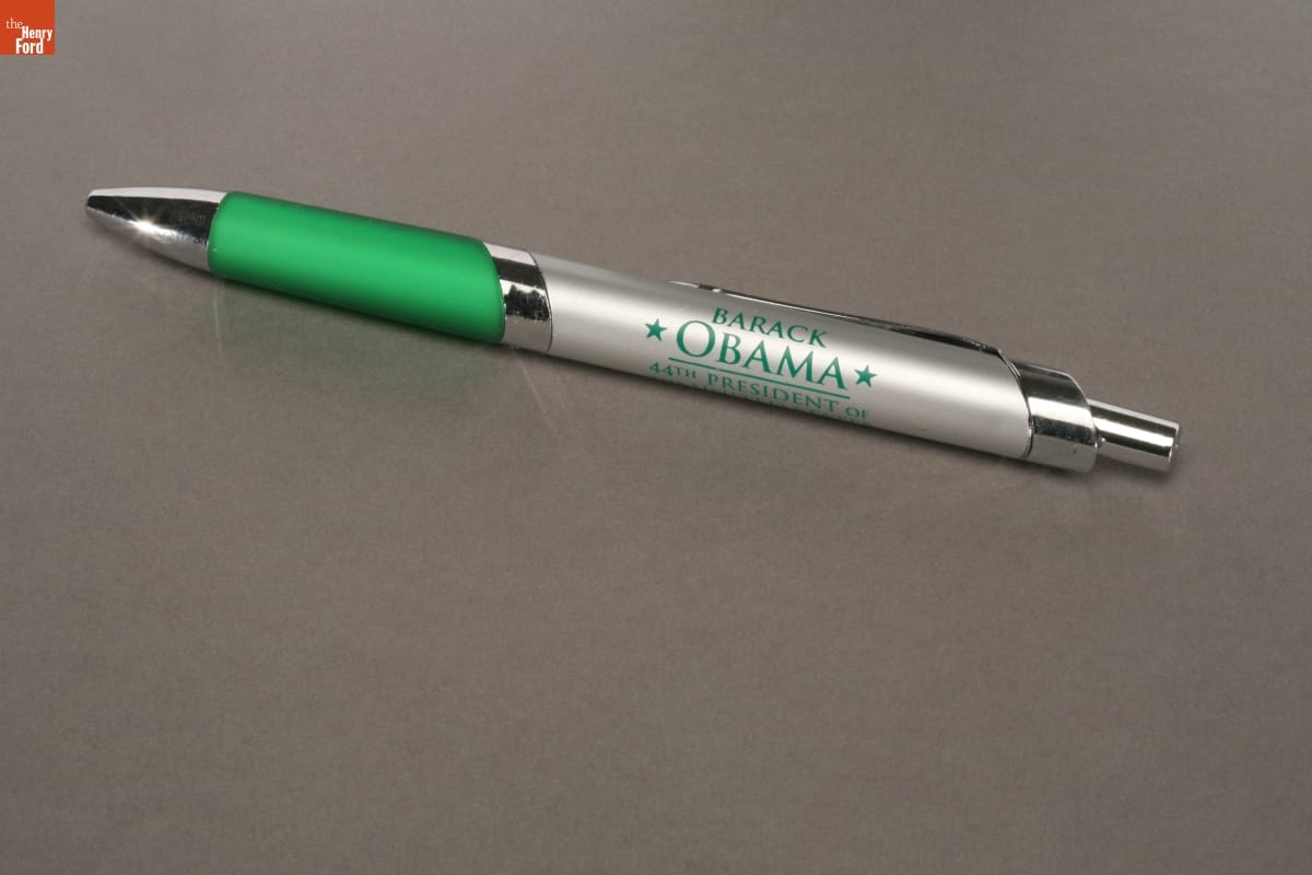 On January 20th, 2009, Barack Obama was sworn in as the 44th President of the United States. More than one million Americans came to Washington, D.C., to witness the inauguration of America's first African American president. Souvenirs, like this pen, provided supporters with a tangible remembrance of this historic event.