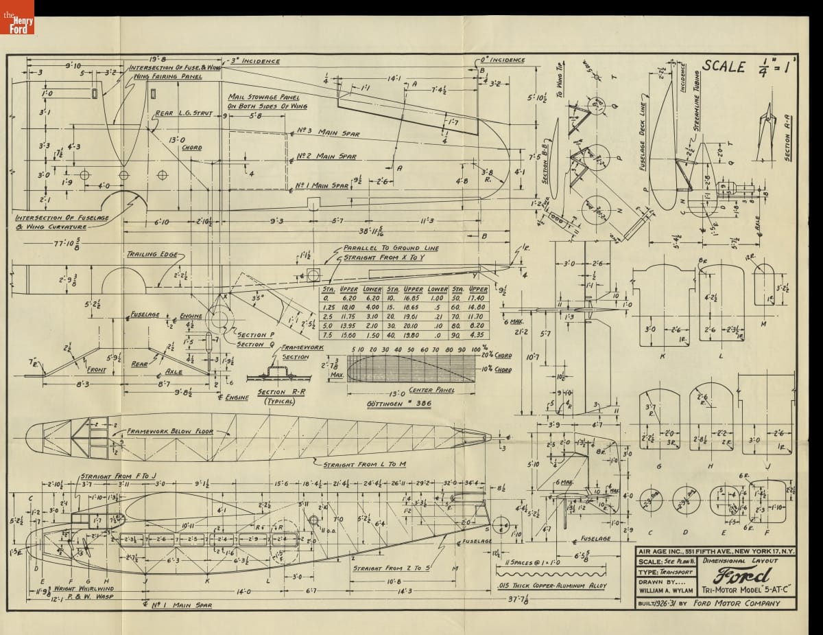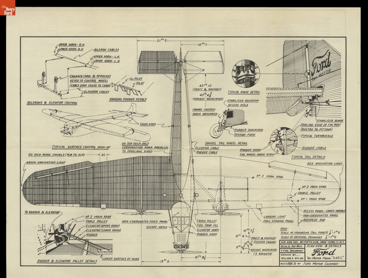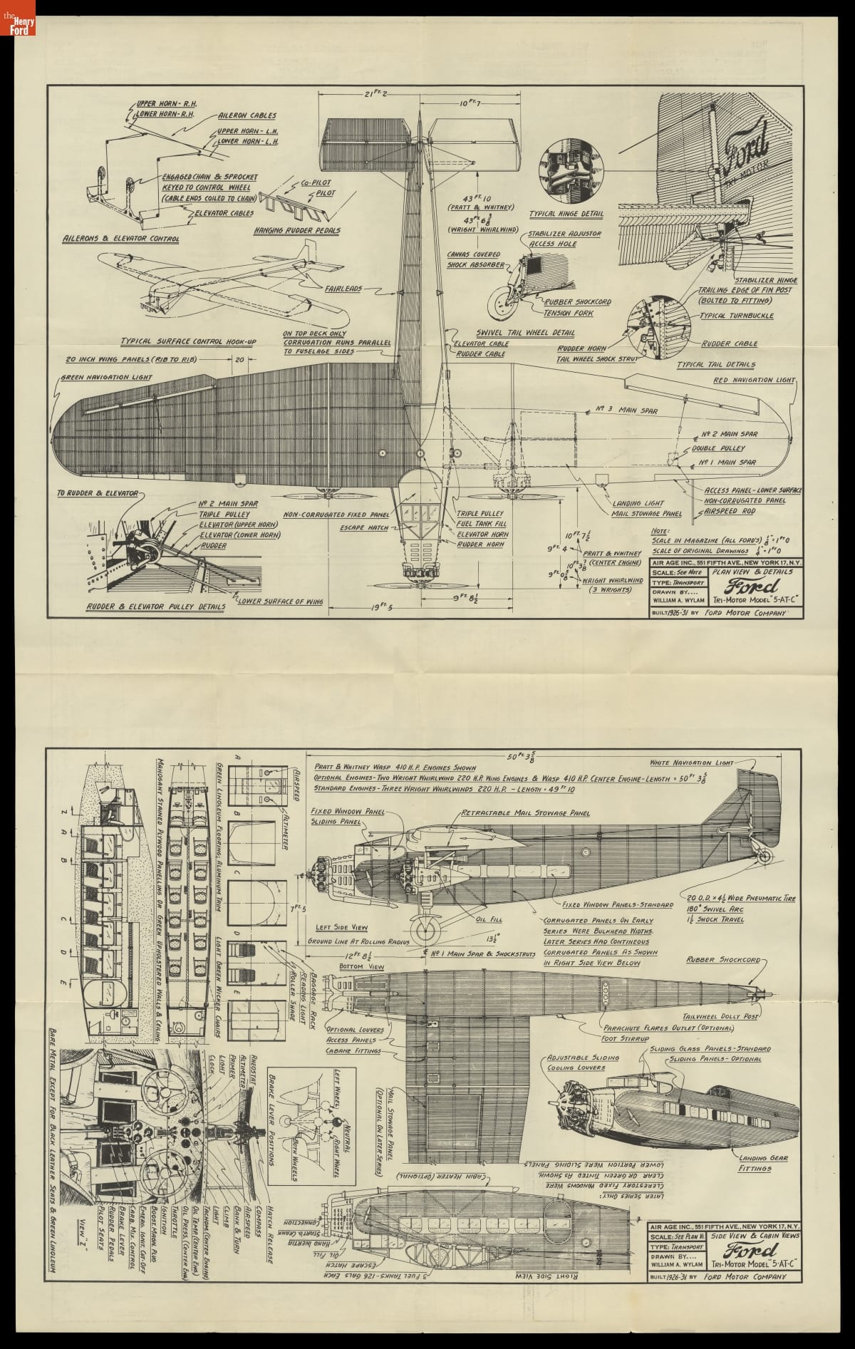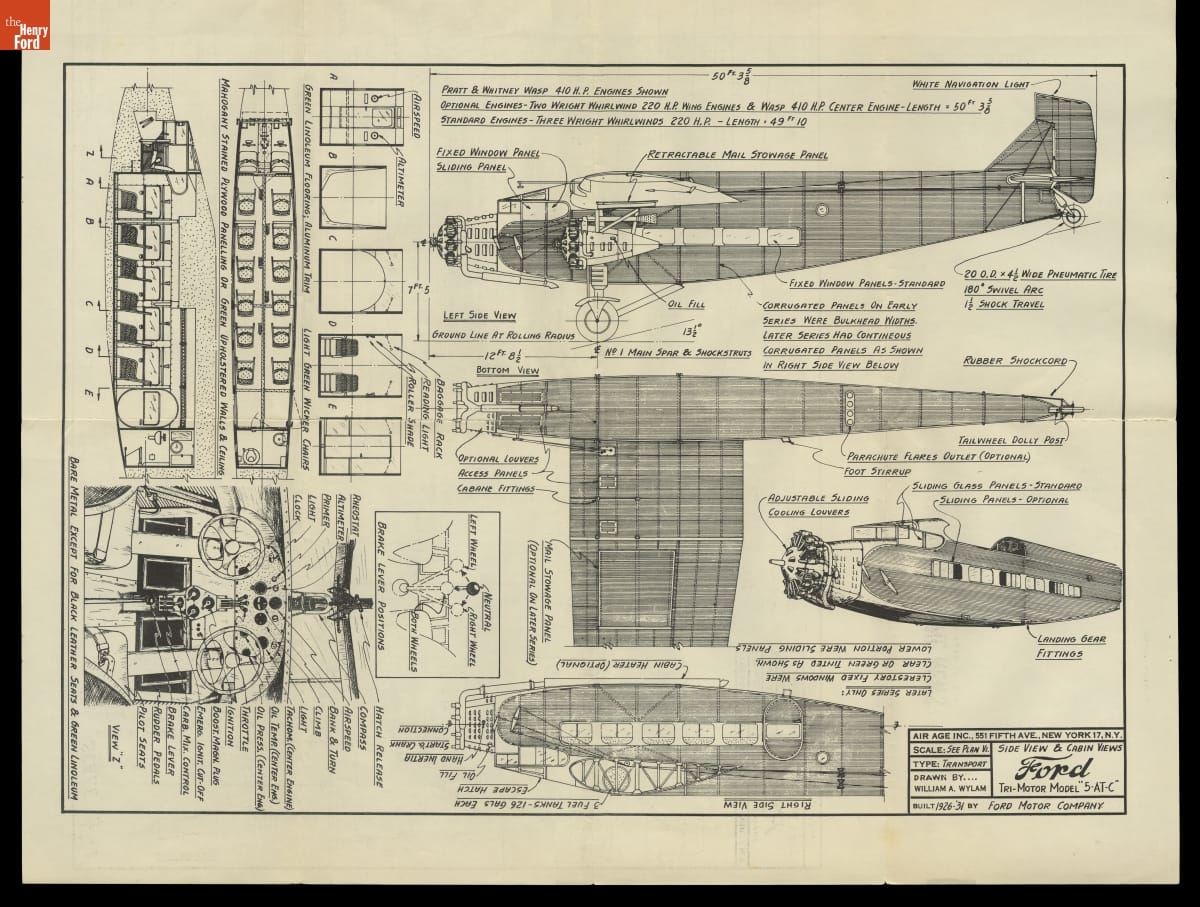 Air Age, Inc., 551 Fifth Ave., New York, 17, NY / Dimensional Layout / FORD / TRI-MOTOR MODEL "5-AT-C" / ...Drawn by... / William A. Wylam / Built 1926-'31 by Ford Motor Company