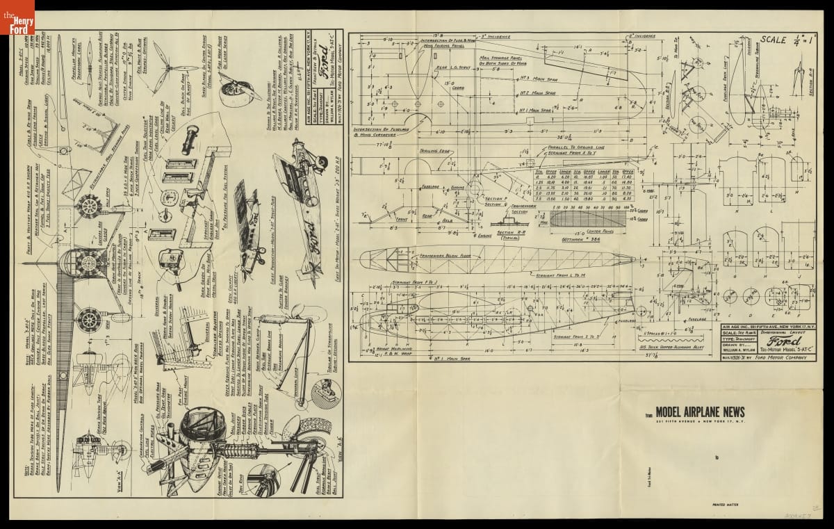 Model Airplane Plans for the 1926-1931 Ford Tri-Motor Model "5-AT-C," circa 1955