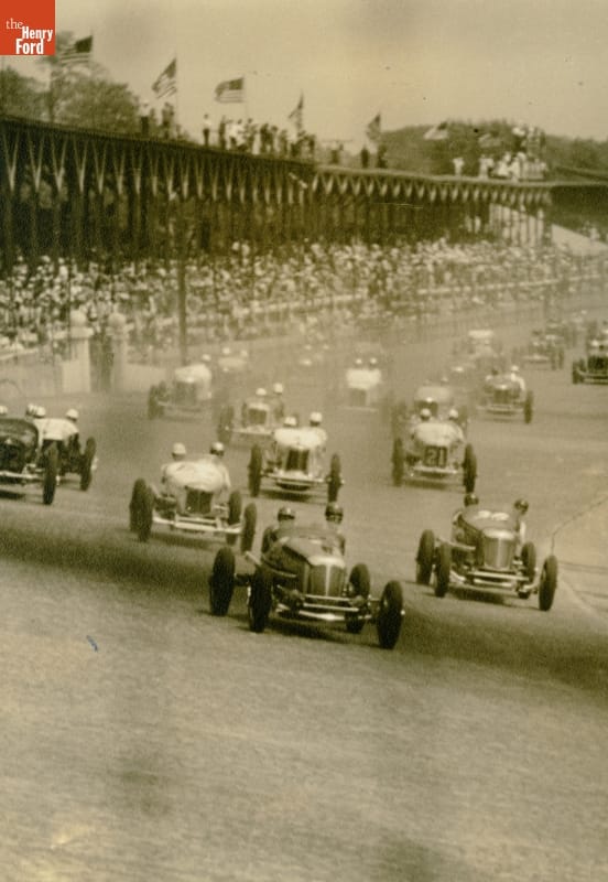 In 1937, the 25th running of the Indianapolis 500 saw 33 entrants and one of the closest margins of victory: 2.16 seconds for Wilbur Shaw. Note that these high-powered race cars still required a two-man team of a driver and a riding mechanic to keep the cars running at top speed.