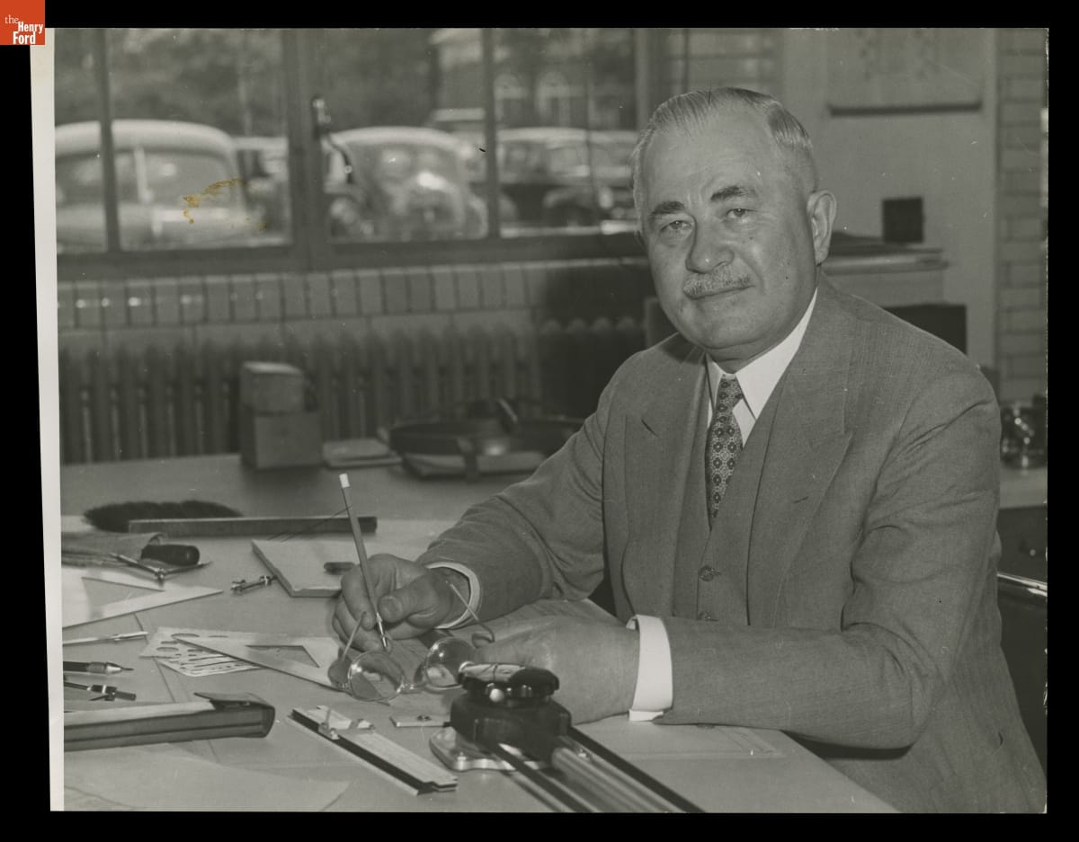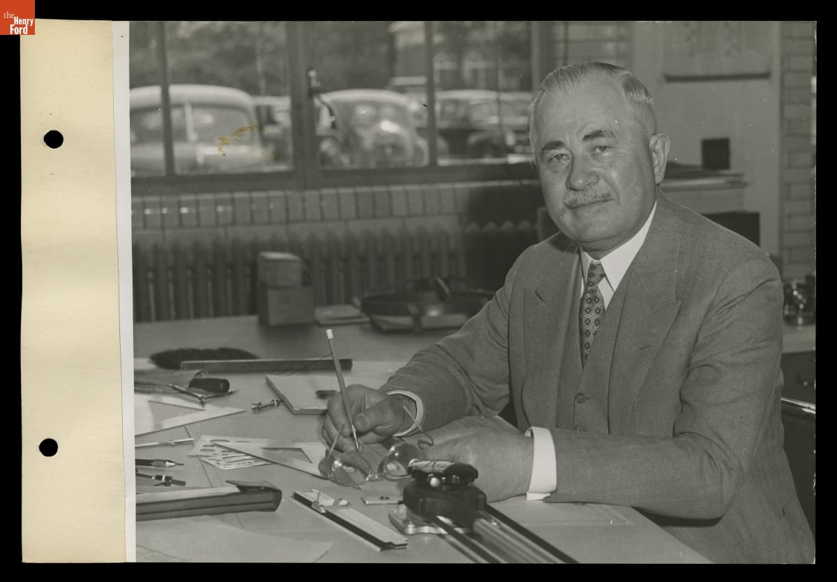Ford Motor Company Designer Joseph Galamb Working in the Dearborn Engineering Laboratory, July 1943