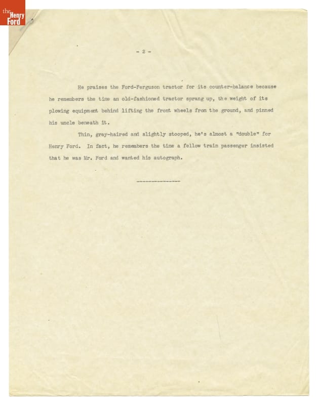 Byron Moore grew up on a farm in rural Utica, Michigan, and came to work for Ford Motor Company. This biography describes his positions at the Piquette Plant, the Grand Boulevard and Woodward sales branch office, the Highland Park Plant, and the Rouge Plant. Moore also remarks on Henry Ford's theories about agriculture and advancements in safety on the farm.