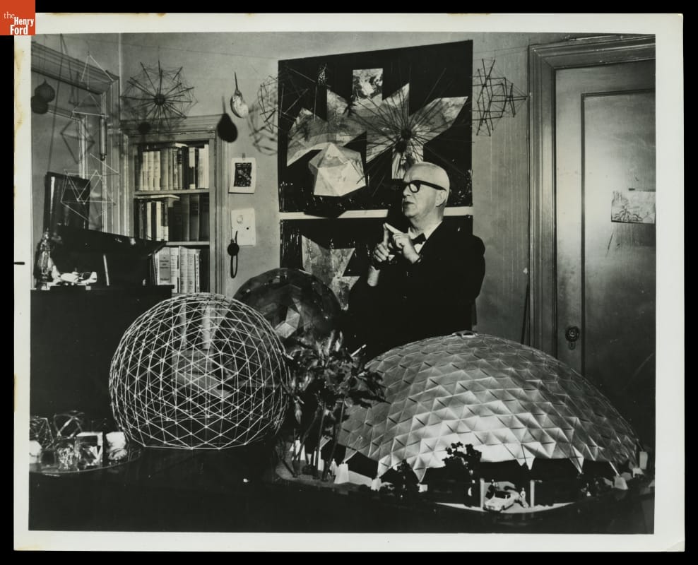 Buckminster Fuller Surrounded by Geodesic Structures in His Office, circa 1951