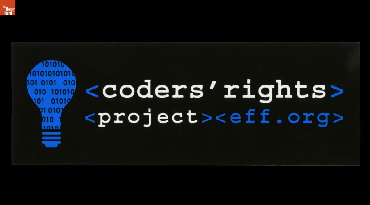 The Electronic Frontier Foundation (EFF), a watchdog organization for digital civil rights, lobbies and engages in litigation to support free speech and privacy on the internet. People can show their support of the organization and its work by purchasing (and wearing) items such as buttons and stickers.