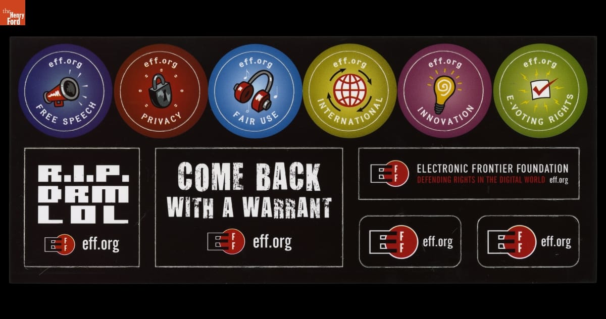On sticker: EFF/ ELECTRONIC FRONTIER FOUNDATION/ DEFENDING RIGHTS IN THE DIGITAL WORLD eff.org