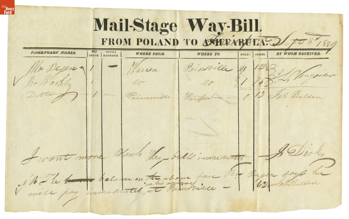 Mail-Stage Waybill from Poland to Fairport, Ohio, 1829