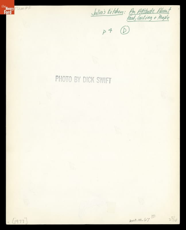 In 1977, "Julia's Kitchen: A Design Anatomy" was published as the first in a series of "design anatomies" by Design Quarterly. In this issue, designer Bill Stumpf and his team examined how Julia Child -- a chef well-versed in the functions of a kitchen -- designed her own kitchen. Numerous sketches and photographs, as well as hours of interviews with Paul and Julia Child, informed the issue.