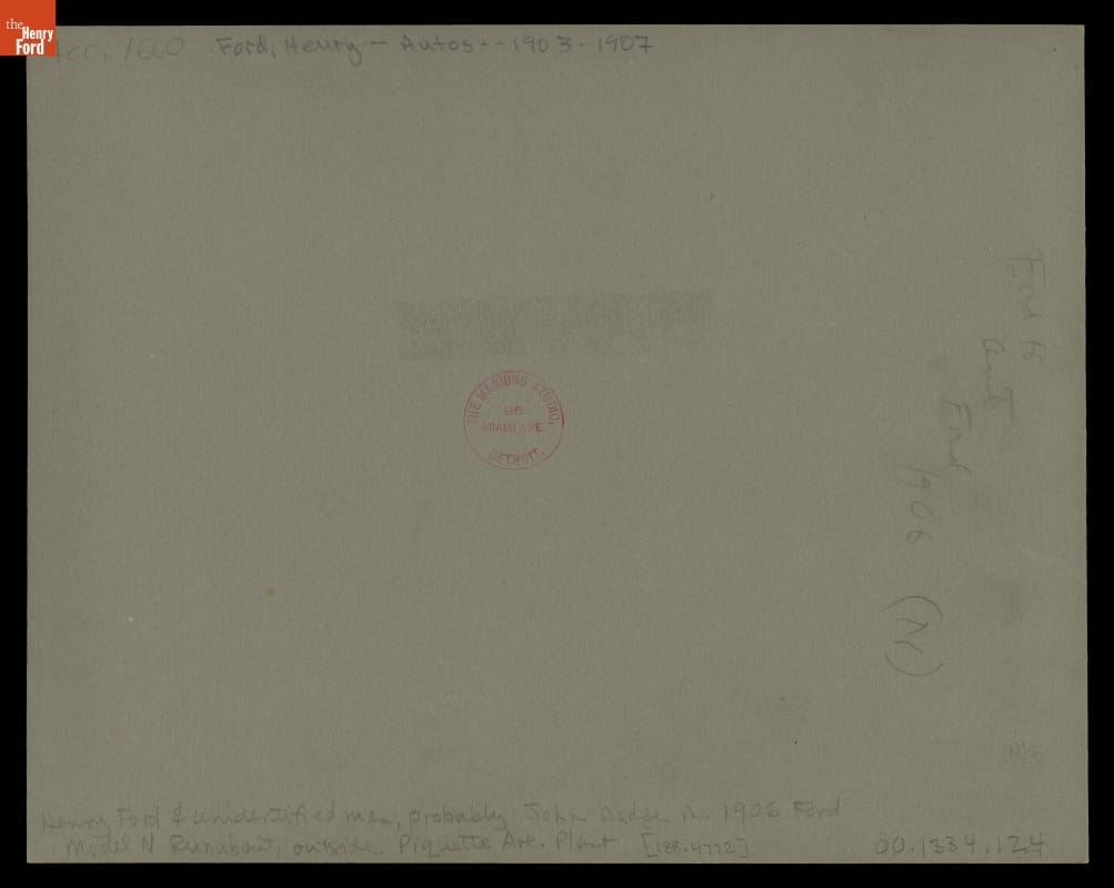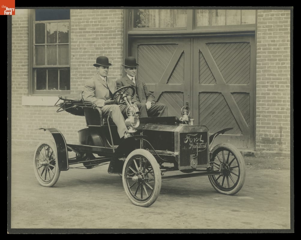 Henry Ford Riding in 1906 Ford Model N Car Outside the Piquette Avenue Plant, circa 1906