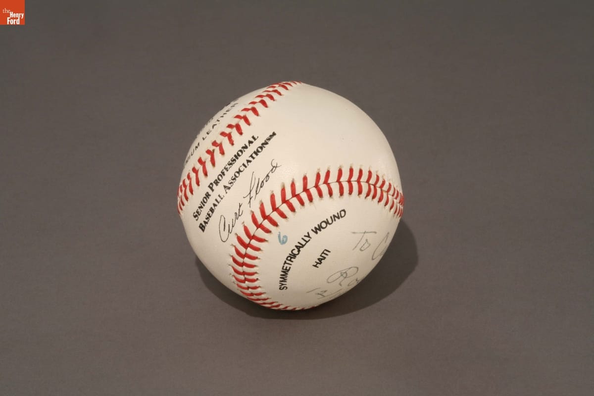 Autographed Baseball from Rosa Parks to Curt Flood, December 18, 1994