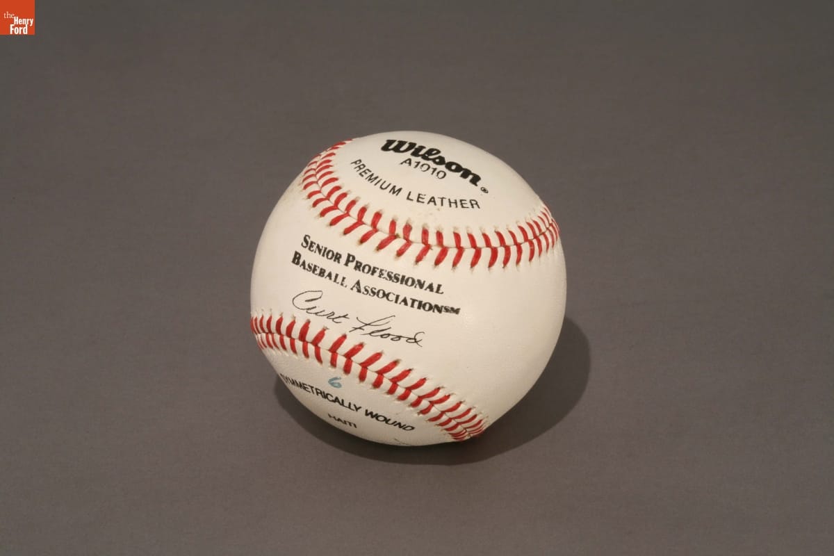 Simple, courageous actions that change society will inspire others. In 1955, Rosa Parks refused to give up her seat on a Montgomery, Alabama, bus to a white man. Her action helped transform race relations in America. Fourteen years later, Curt Flood challenged Major League Baseball's "reserve clause," and transformed owner-player relations in team sports. In 1994, Rosa Parks signed this baseball for Flood.