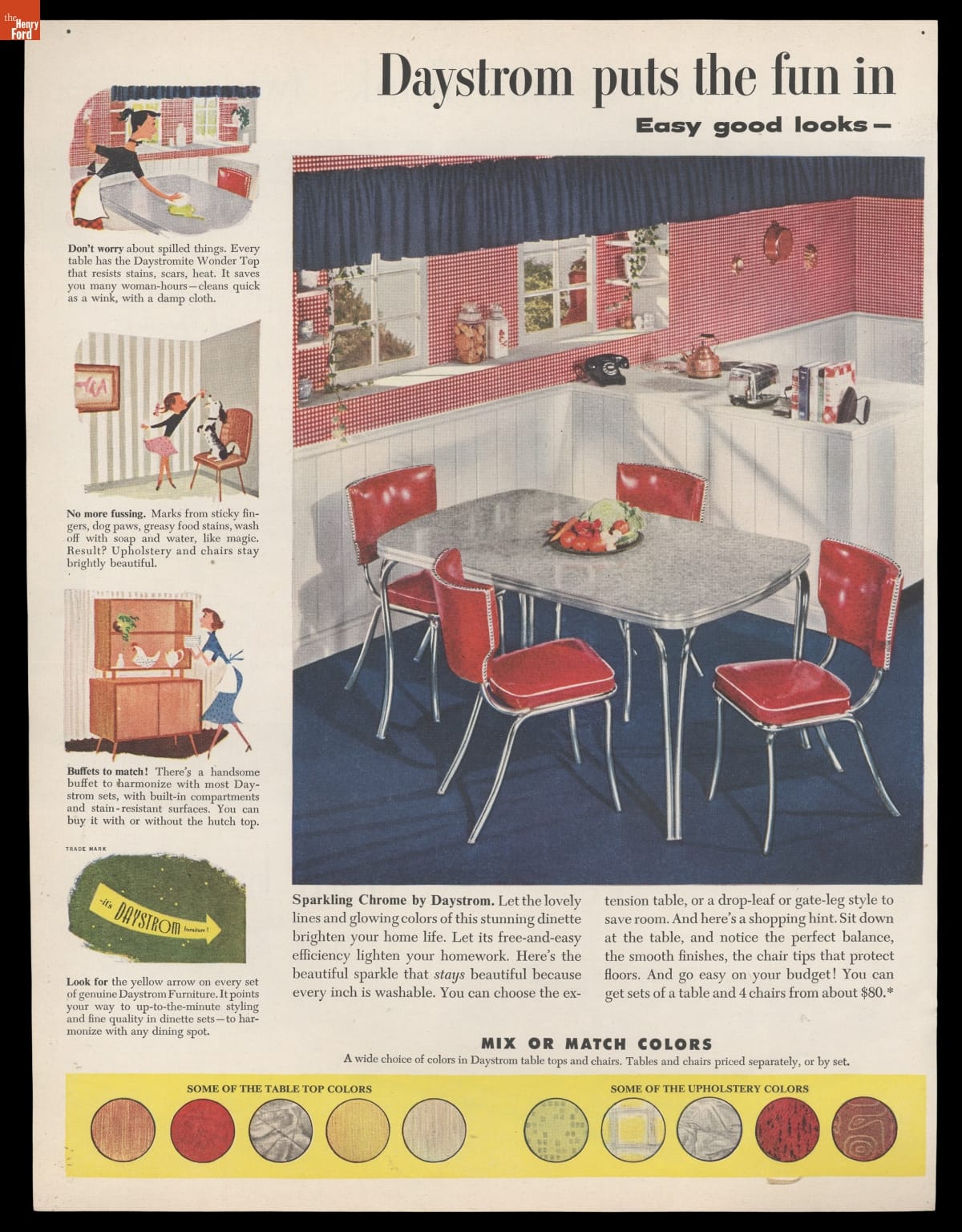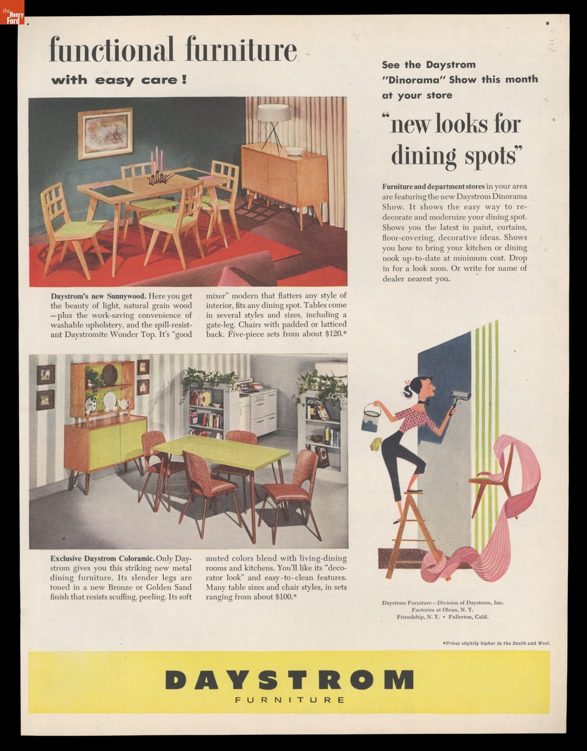 Advertisement for Daystrom Kitchen Dining Furniture, "Daystrom Puts the Fun in Functional Furniture," May 1952