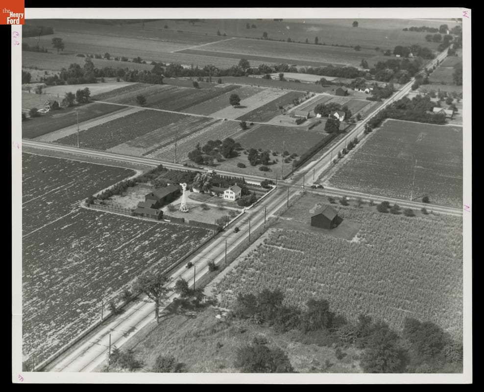 Aerial View of Ford Home (Henry Ford's Birthplace) at Its Original Location, Dearborn, Michigan, 1931