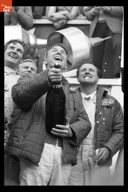 Caught up in the excitement of winning the 1967 24 Hours of Le Mans race, driver Dan Gurney vigorously shook his champagne bottle and sprayed the sparkling wine over everyone within reach. "It was like a fire hose," Gurney later said, "and they were loving it." Gurney's spontaneous celebration started what is now a victory tradition.