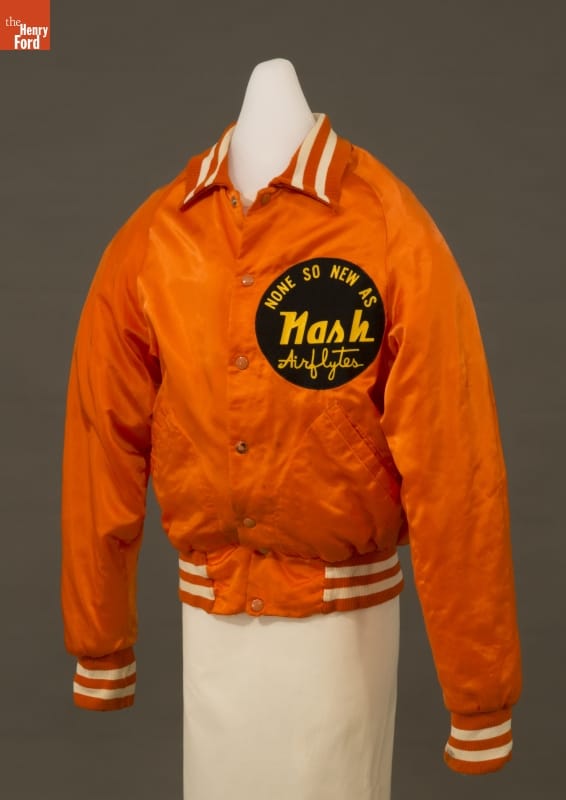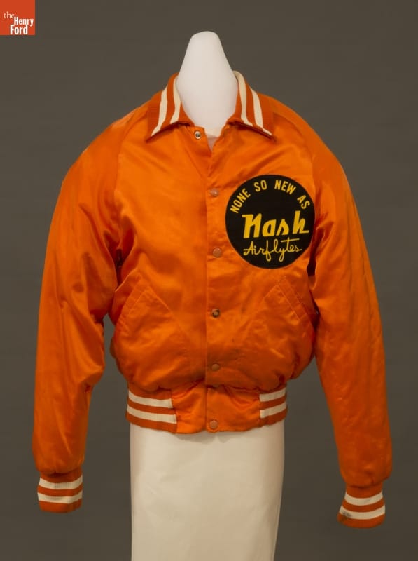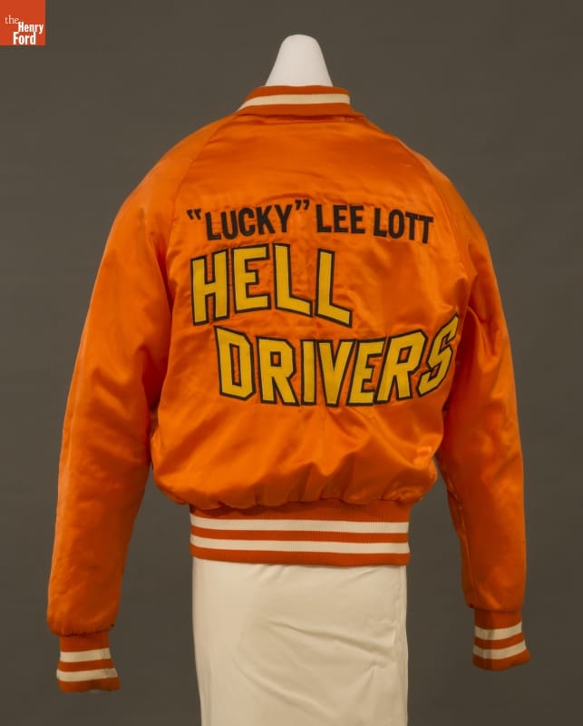 Stunt car driver "Lucky" Lee Lott and his Hell Drivers entertained audiences throughout the United States from 1935 to 1955. Lott crashed, jumped, flipped and demolished thousands of cars during his career. Many of these cars were from Nash Motors -- his sponsor at one time. This tribute jacket has a large Nash Airflyte patch on the front.