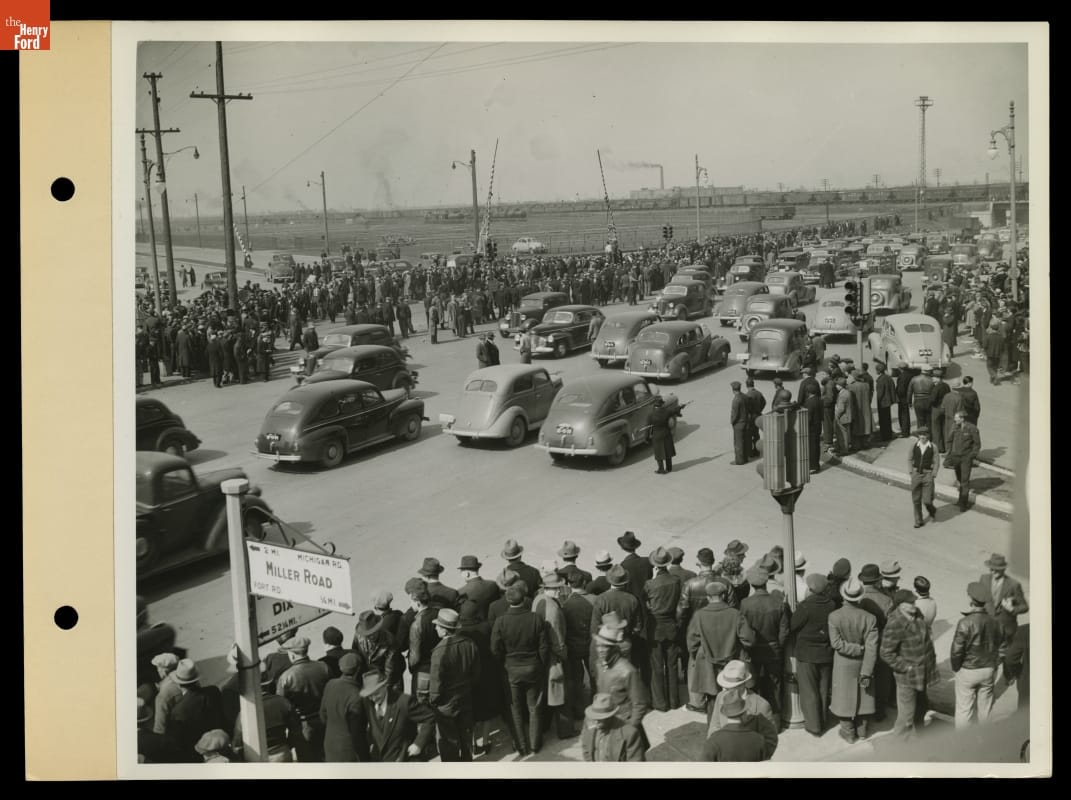 Traffic Slowdown at Miller and Dix Roads during Ford Rouge Plant Strike, Dearborn, Michigan, 1941