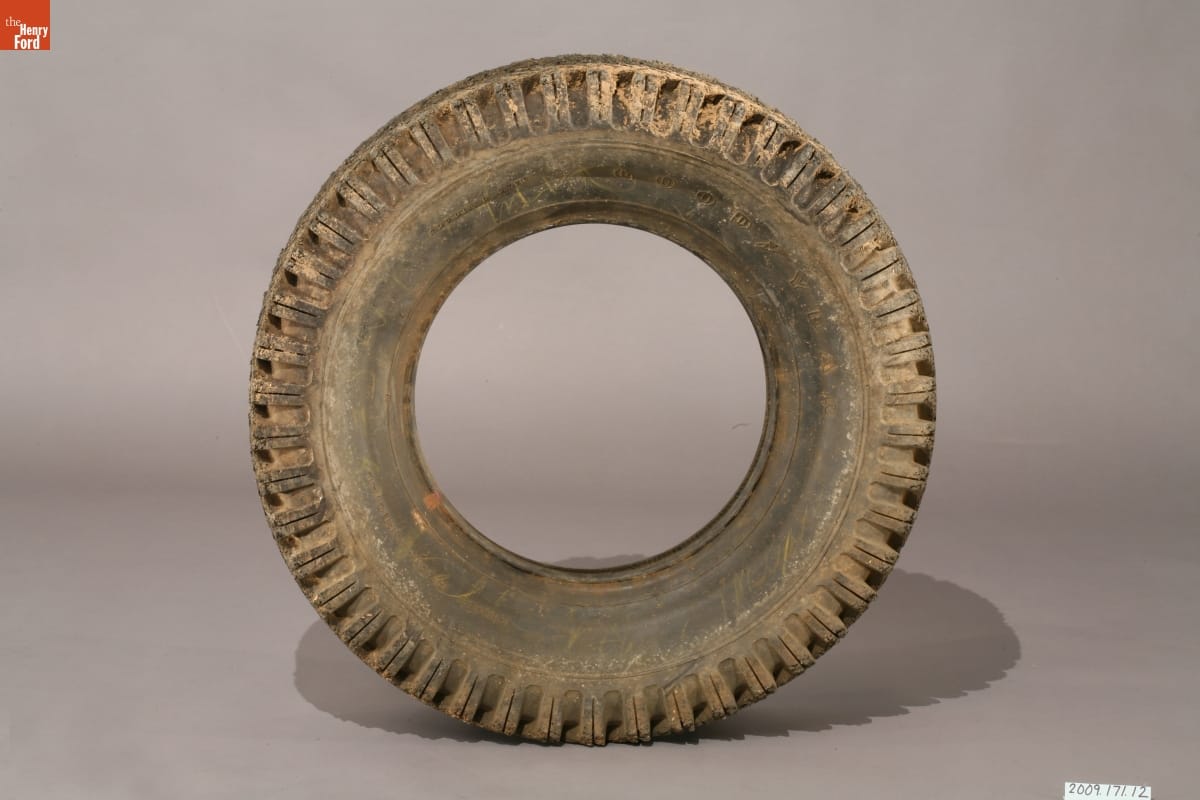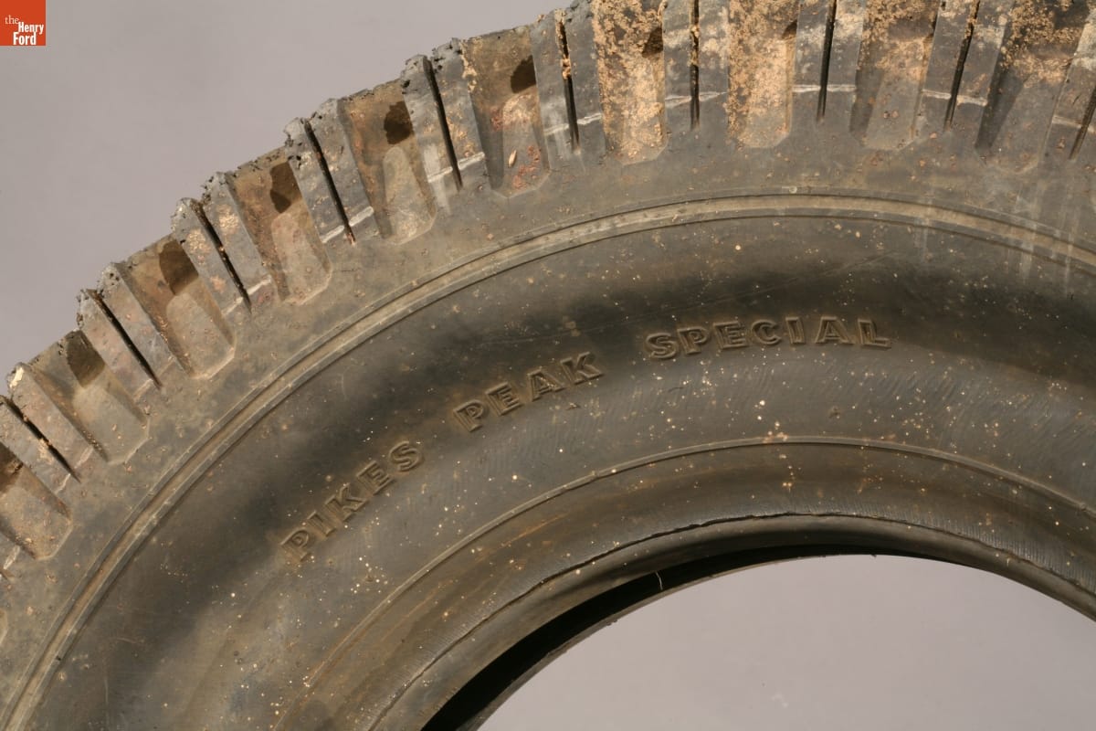On side: GOODYEAR/ MADE IN USA/ 4 PLY RATING/ 2 PLY/ 760-15/ 21635-1/ PIKES PEAK SPECIAL/ [worn off]/ 70314 8 3726