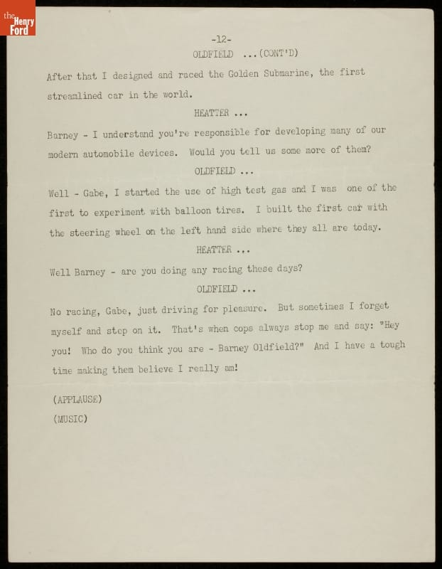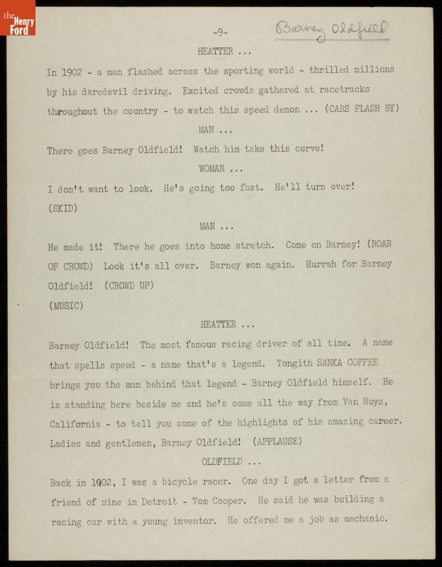 Radio Scripts Featuring Barney Oldfield, circa 1935