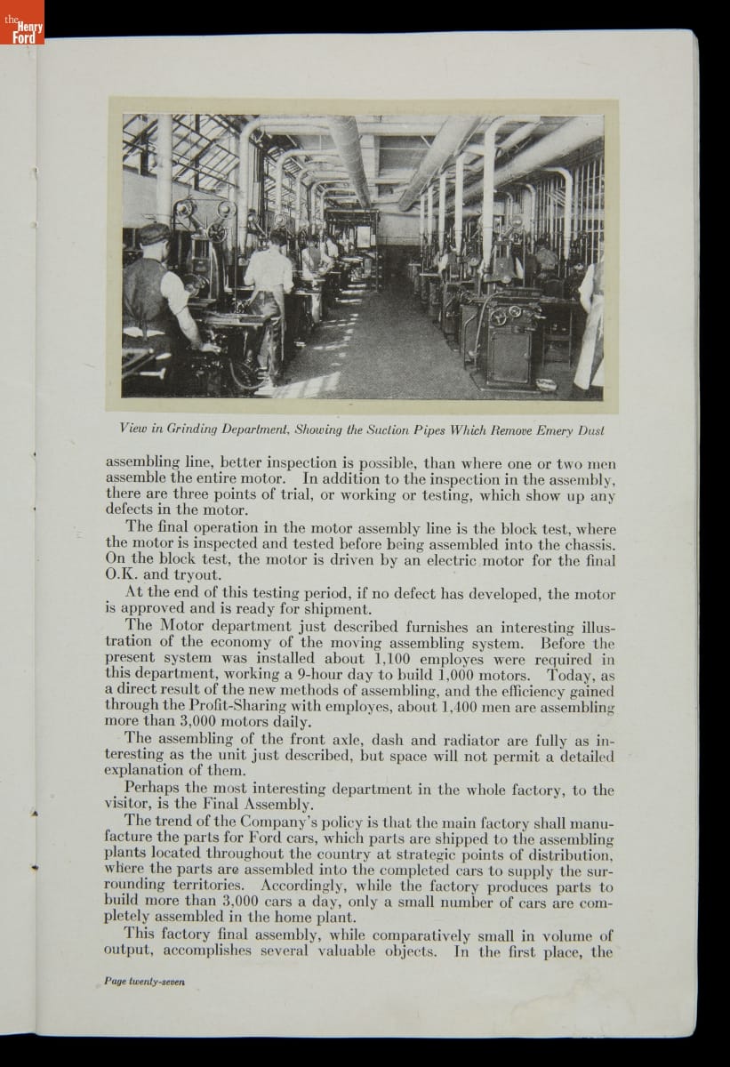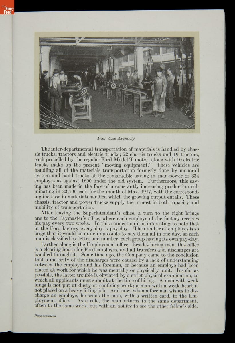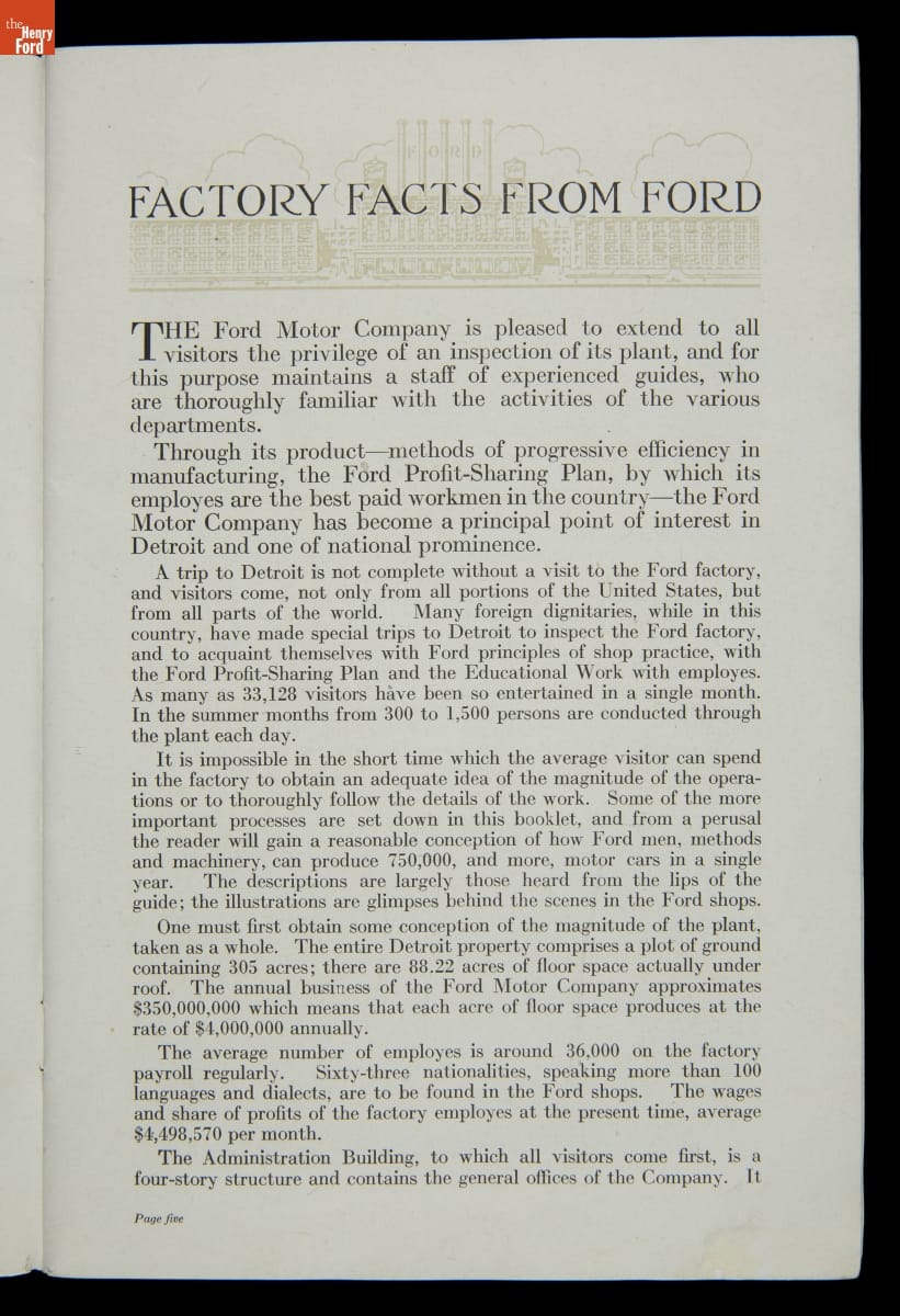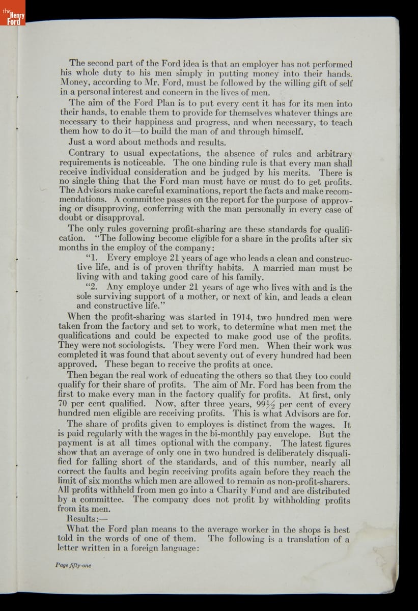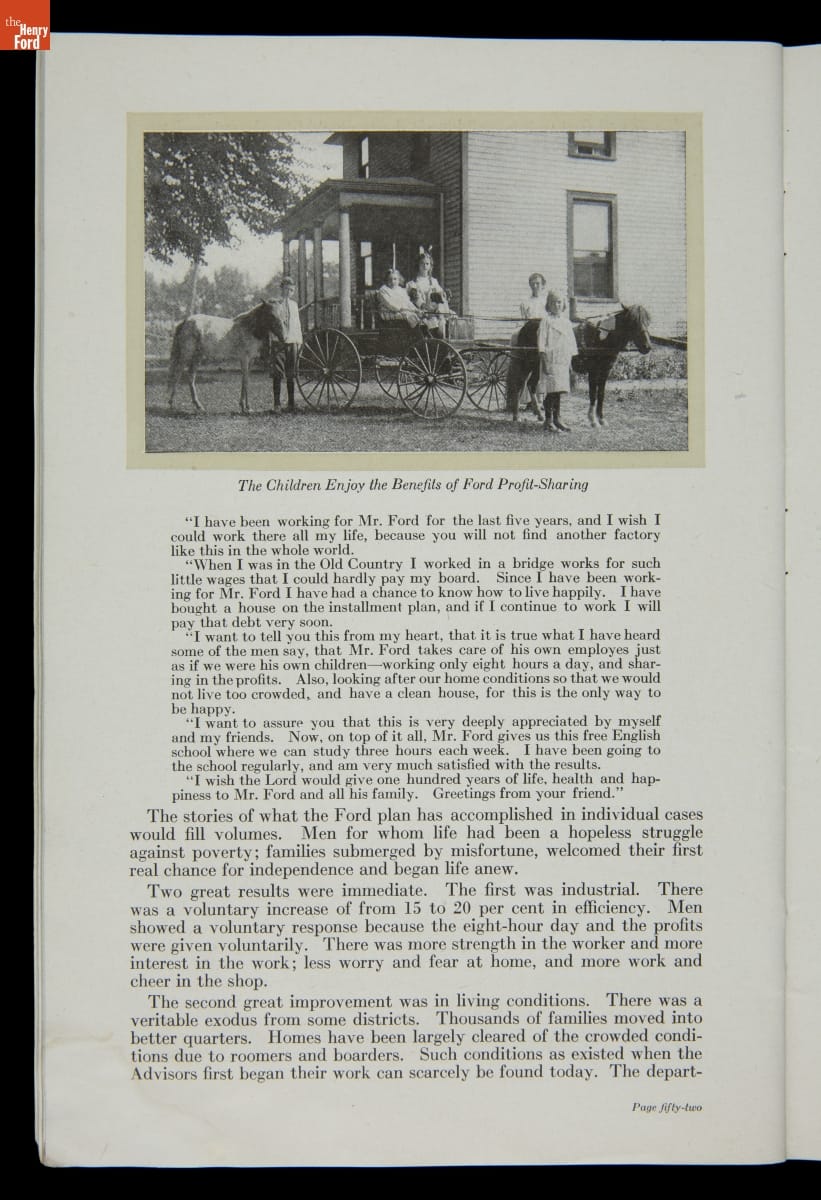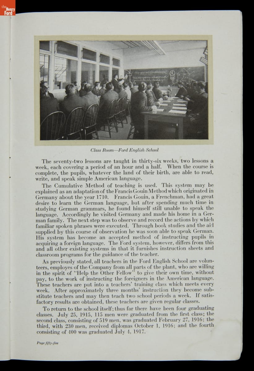 Beyond revolutionizing America's industrial production, Henry Ford and other managers at Ford Motor Company instituted a wide-reaching corporate welfare program that opened up the most intimate and personal details of employee's personal, family, and financial life to investigators from the Sociological Department. After the announcement of the $5 per day profit sharing plan in January 1914, Henry Ford wanted to ensure that employees, many of whom were non-English speaking immigrants, did not squander the funds. To this end, the Ford Sociological Department was created to investigate and monitor the personal and work lives of employees to the extent that investigators (later called Advisors) conducted home visits, checked bank deposits, and monitored children's school attendance as well as divorce filings. In addition, the Sociological Department advisors provided hygiene instruction, financial and legal advice, and worked with the English School to teach Ford's immigrant workers English.