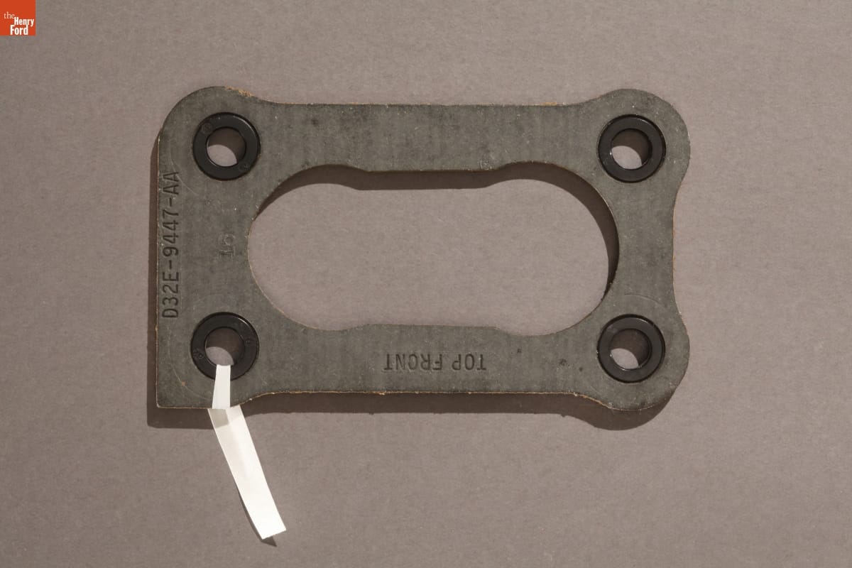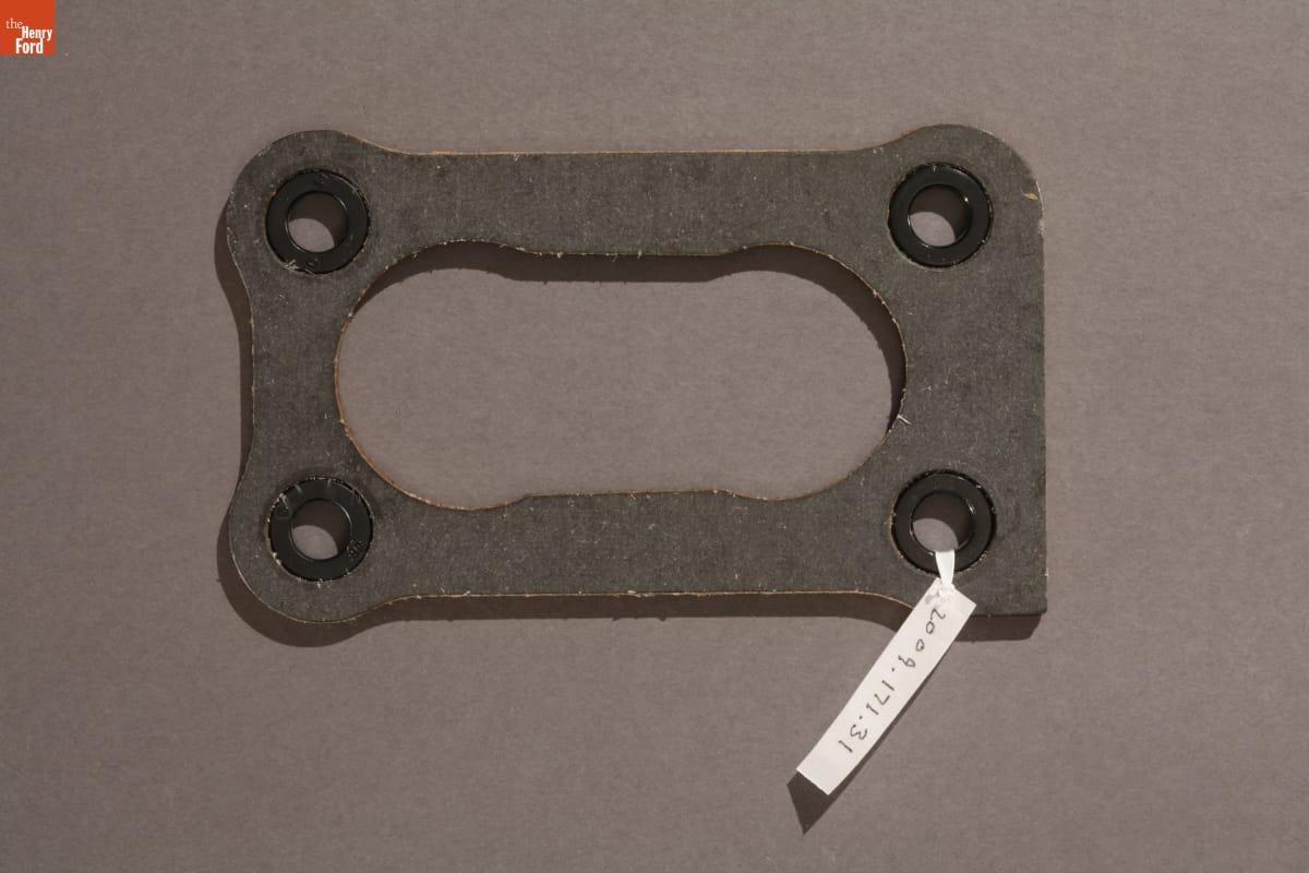 Bobby Unser used this carburetor gasket on his flow bench to help test race car engine parts. A flow bench is typically used to test the airflow through engine parts such as cylinder heads, air filters and carburetors. Testing led to better designs and engine performance -- and better race results.