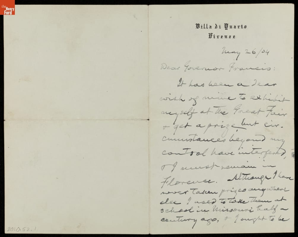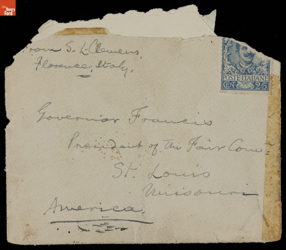 Letter from Mark Twain to Governor Francis about Exhibiting His Portrait at the St. Louis World's Fair, 1904