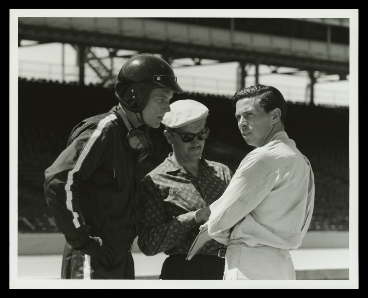 Drivers Dan Gurney (left) and Jim Clark (right) combined forces with designer Colin Chapman (center) to revolutionize the Indianapolis 500. Front-engine roadsters still dominated the race in the early 1960s, but Gurney believed a rear-engine Formula One style car could win. Gurney brought Chapman together with Ford, and Clark won the 1965 Indy 500 in a Ford-powered, Chapman-designed rear-engine car.