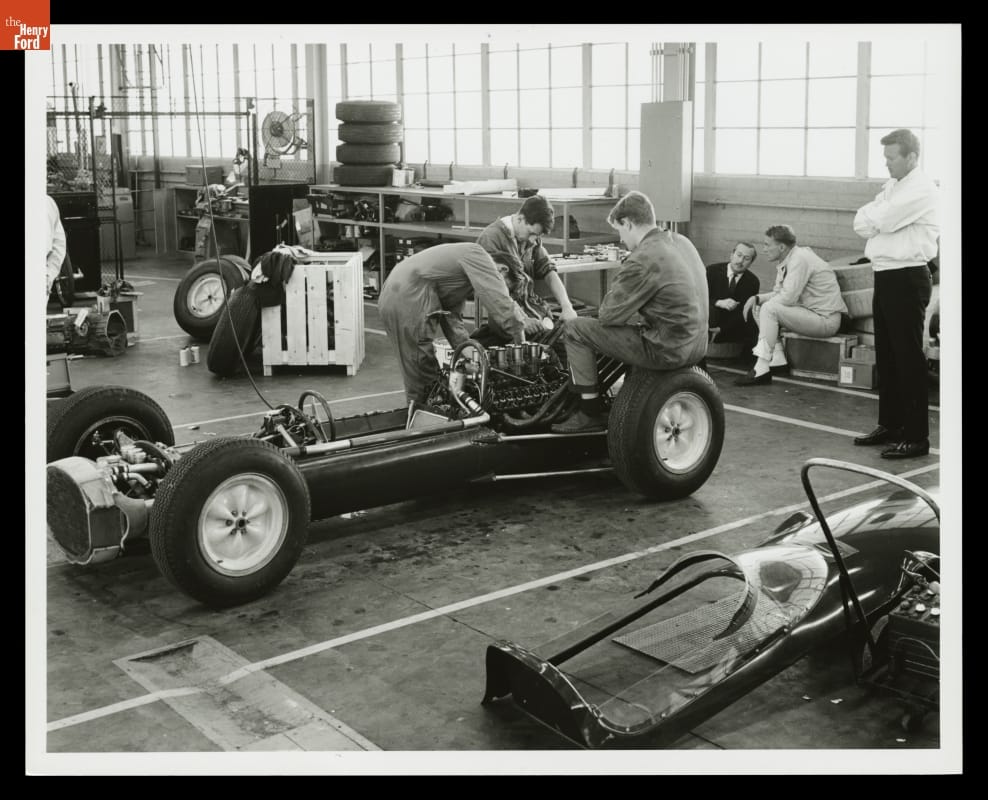In February 1963, drivers Jim Clark and Dan Gurney, and Lotus designer Colin Chapman, gathered with Ford engineers to test their theory that a rear-engine, Formula One style car could compete against the front-engine roadsters that dominated the Indianapolis 500. Clark proved the theory correct in 1965, winning at Indy in a Lotus powered by a rear-mounted Ford V-8 engine.