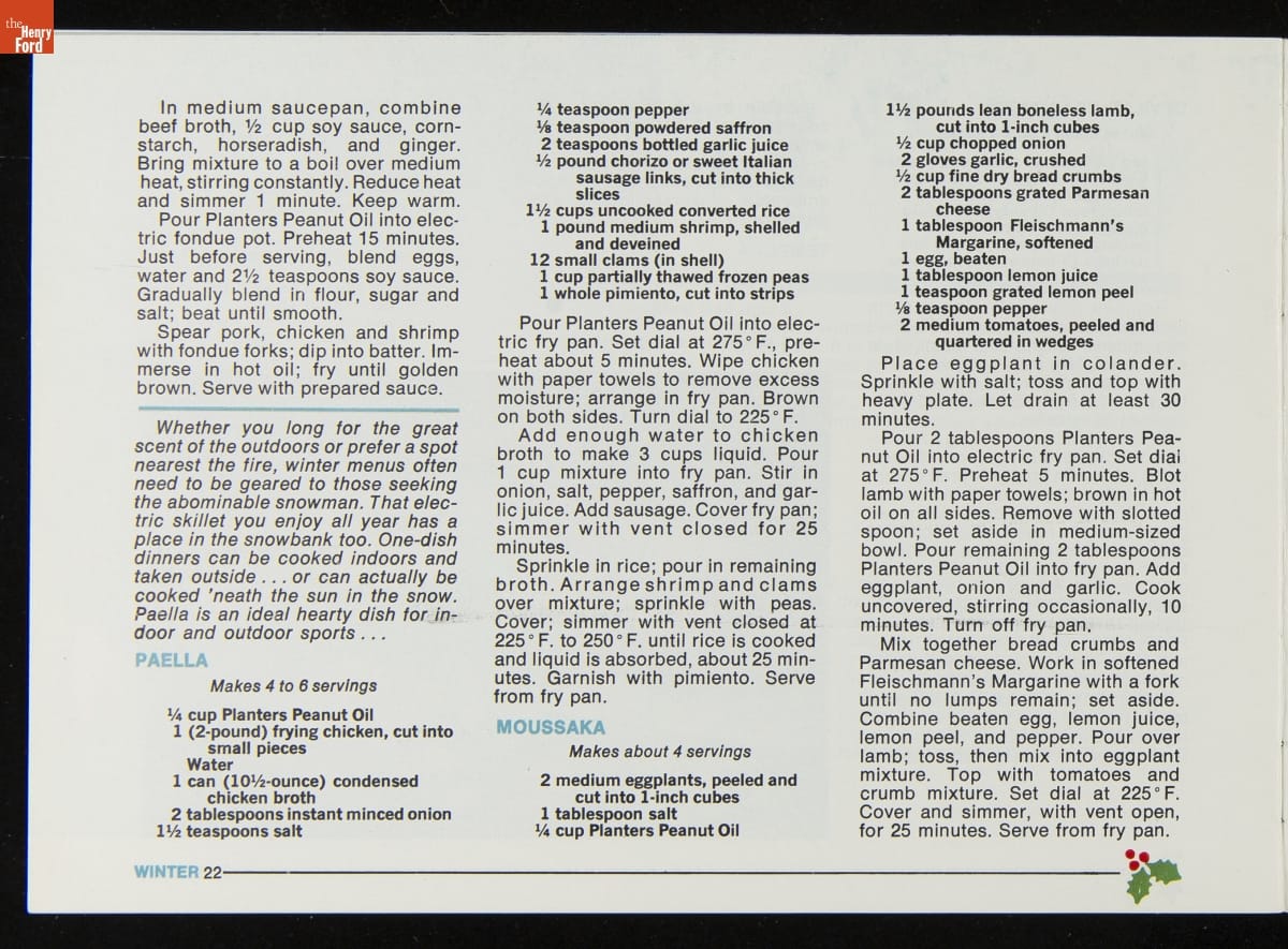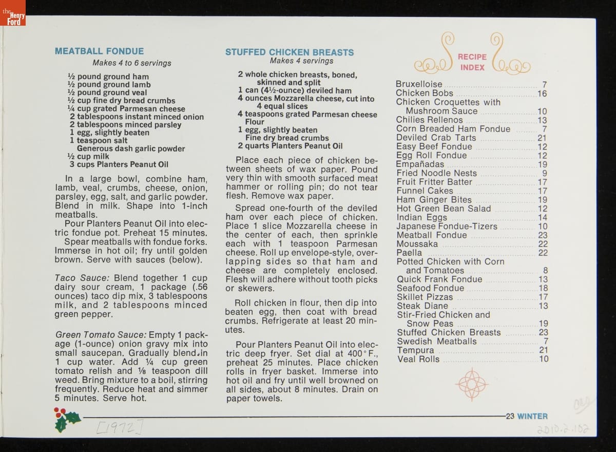 Recipe Booklet, "Planters Peanut Oil Presents: Appliance Cooking for All Seasons," 1972