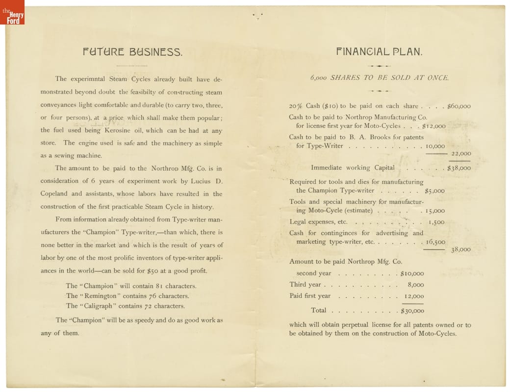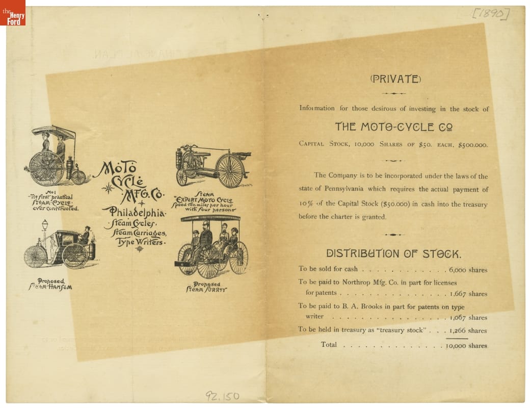 Leaflet Inviting People to Invest in Moto-Cycle Company Stock, 1890