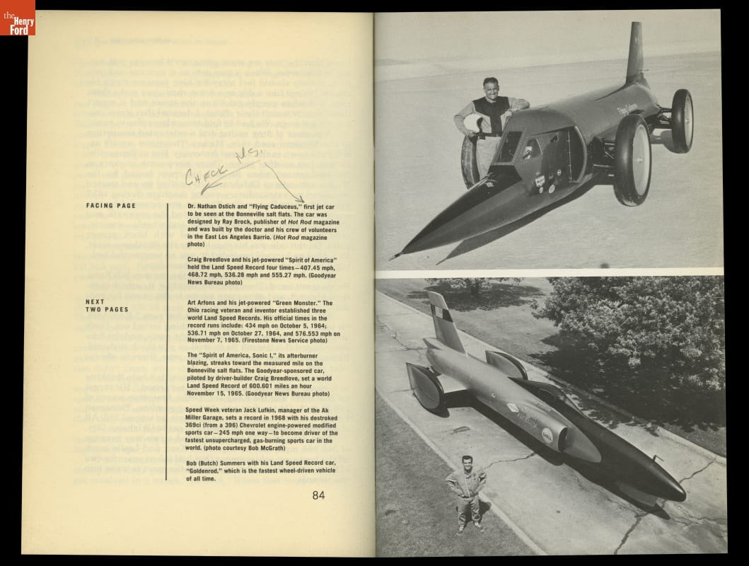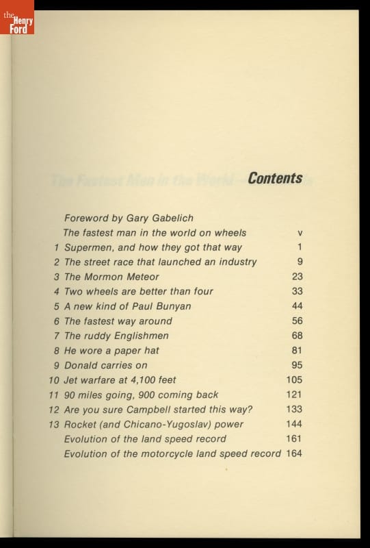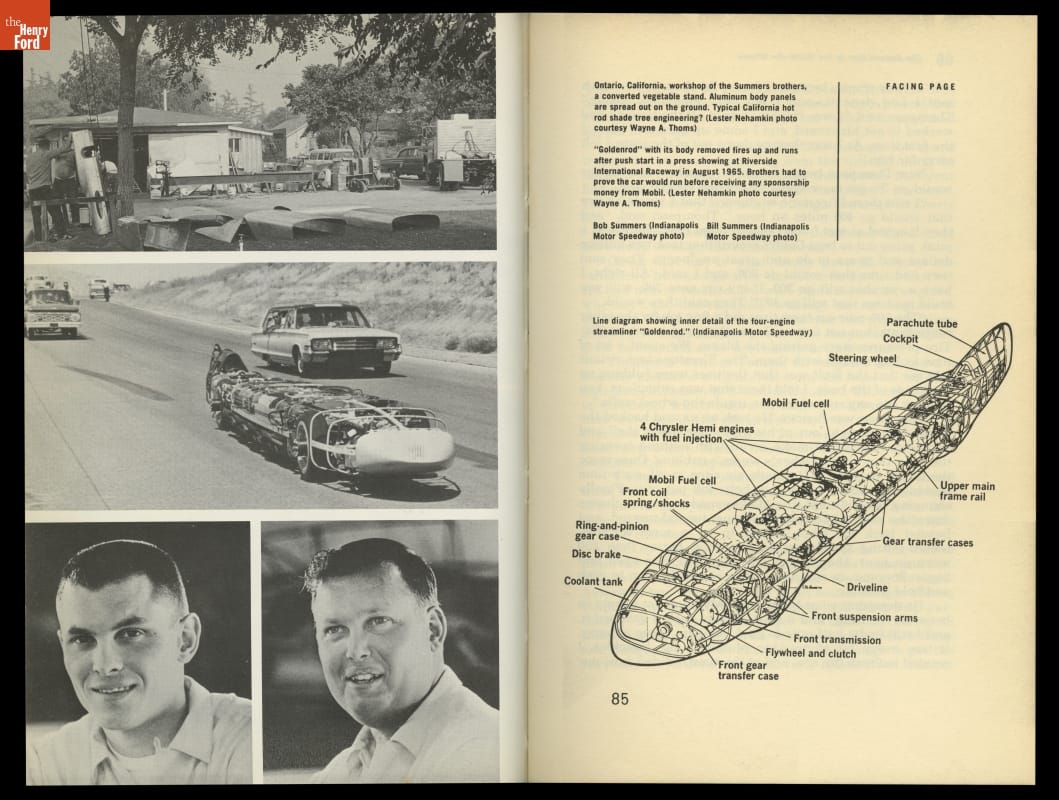 This book examines the quest for the land speed record. Images from the book show a converted vegetable stand where Bob and Bill Summers built Goldenrod, the vehicle that broke the land speed record for wheel-driven cars in 1965.