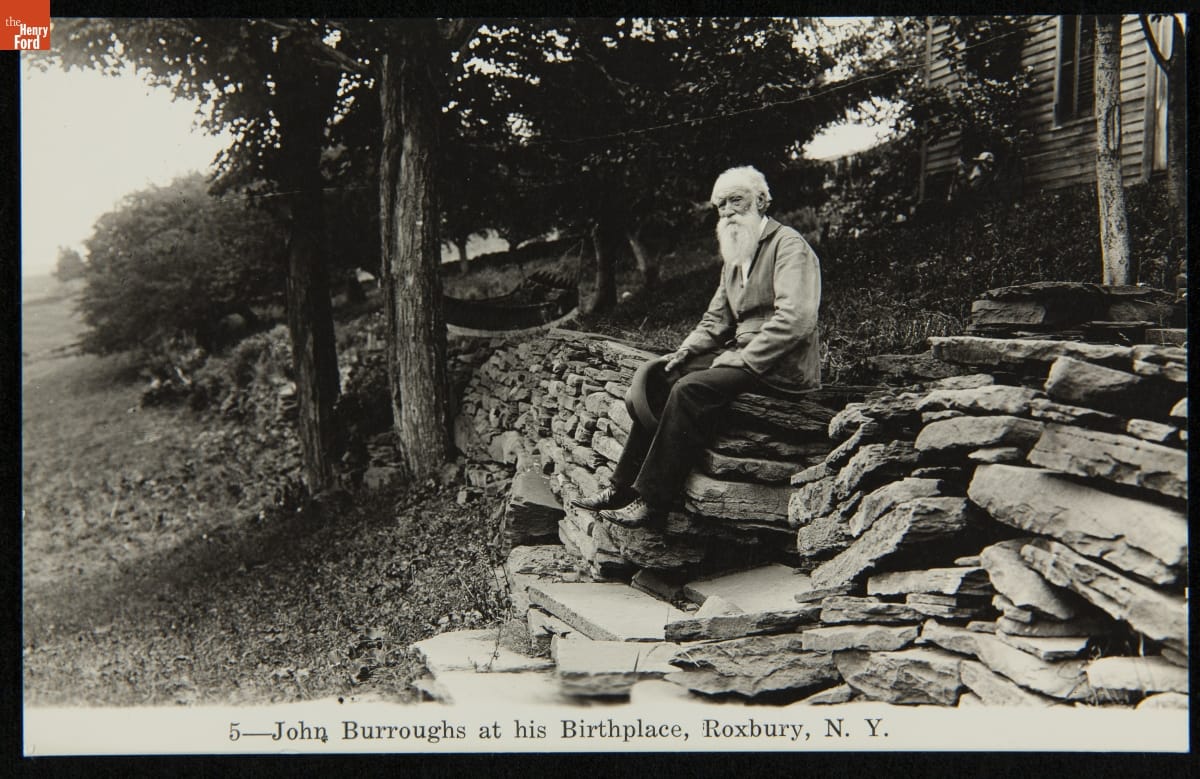Printed on front of postcard at bottom of image: 5- John Burroughs at his Birthplace, Roxbury, N.Y.