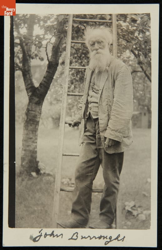 John Burroughs Holding a Ladder near Riverby, circa 1909