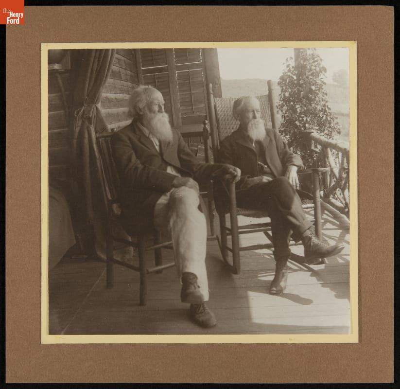Brothers John Burroughs and Eden Burroughs on the Porch at Woodchuck Lodge, circa 1915