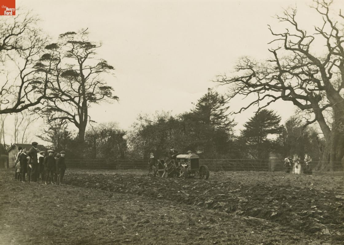 Watching a Tractor Plowing the Field at Oughtrington Hall, Cheshire, England, 1918