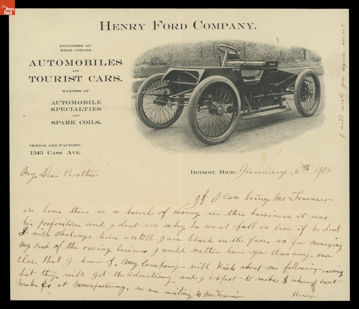 Letter from Henry Ford to Milton Bryant Concerning Auto Racing, 1902