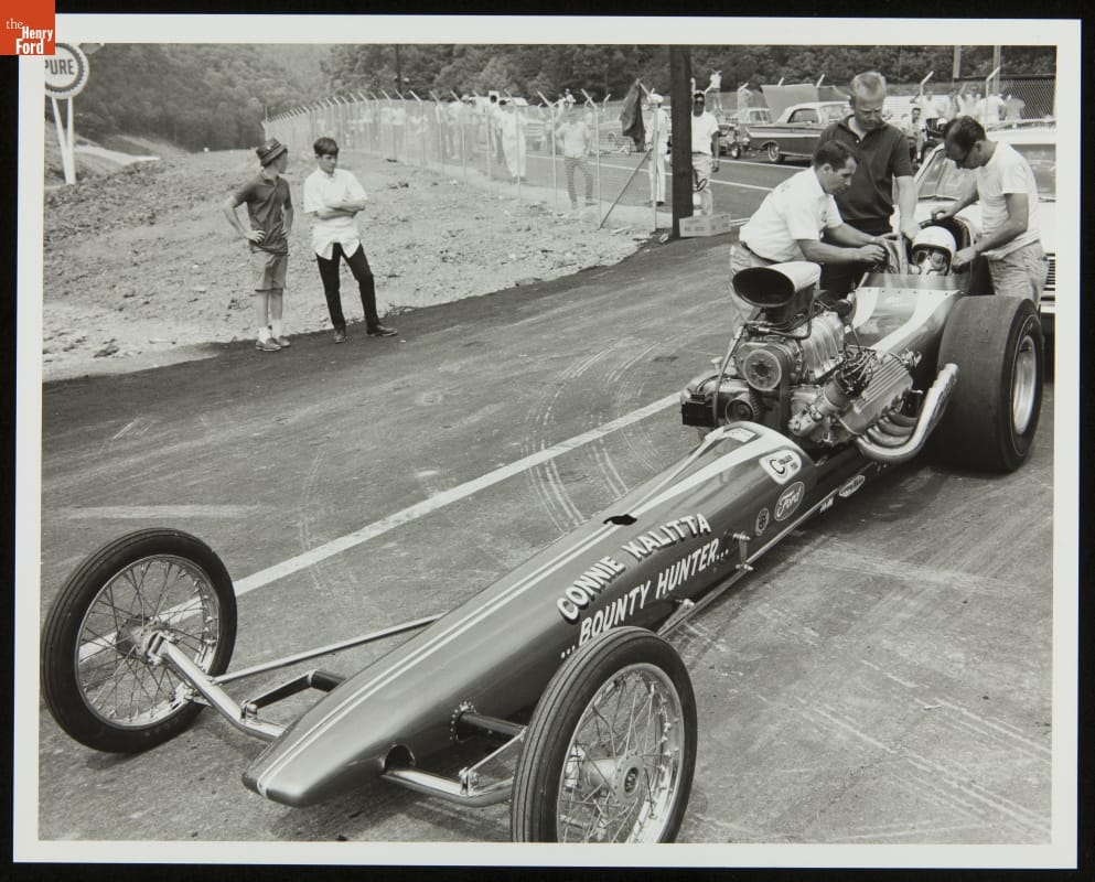 Connie Kalitta in Ford Dragster "Bounty Hunter" at NHRA Spring Nationals at Bristol Dragway, June 1965