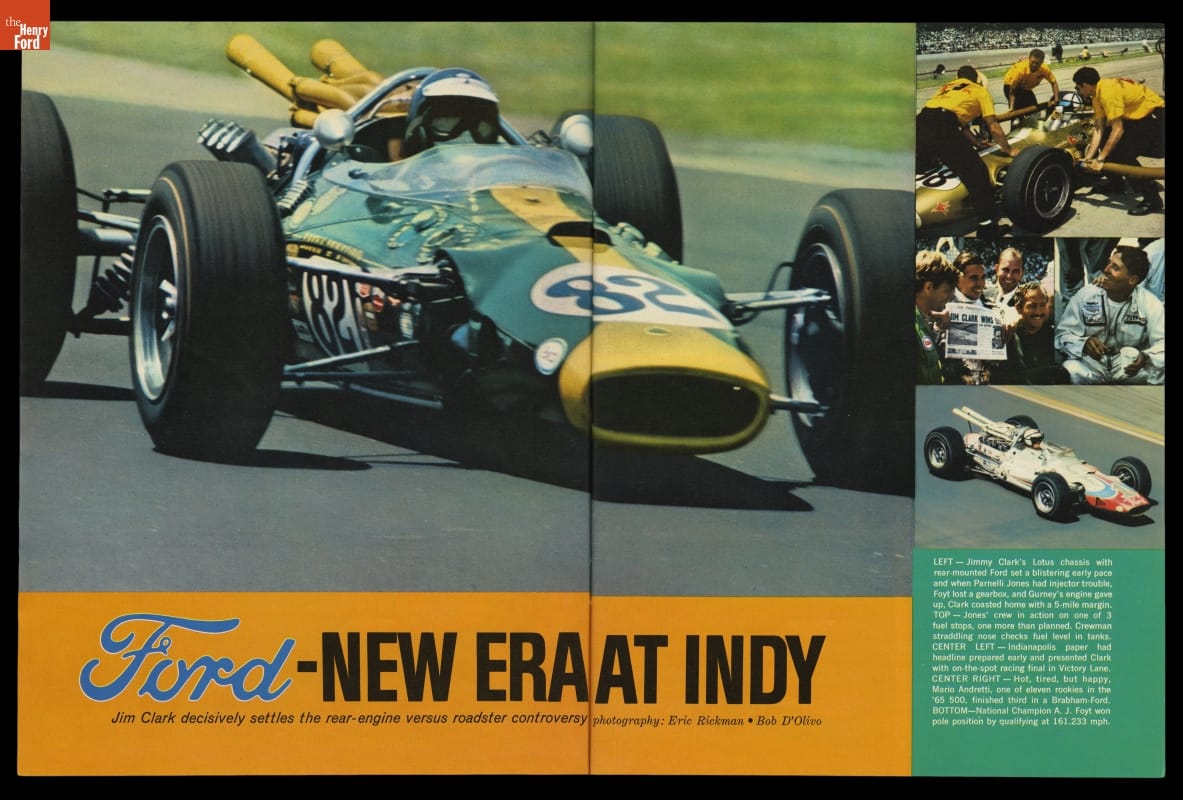 An article in the August 1965 issue of Hot Rod claims a "New Era at Indy" -- and it was. After the rear-engine Lotus-Ford's victory, a traditional front-engine car never won the race again.