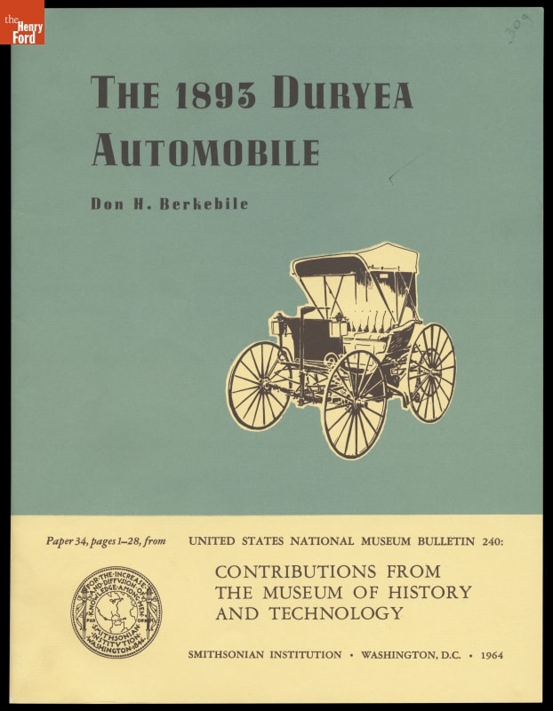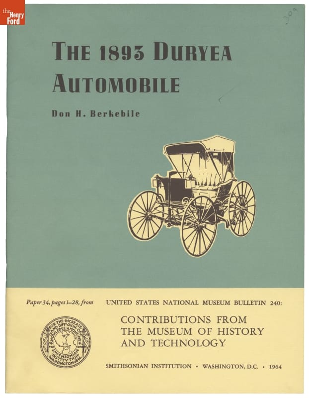 THE 1893 DURYEA / AUTOMOBILE / Don H. Berkebile / Paper 34, pages 1-28, from UNITED STATES NATIONAL MUSEUM BULLETIN 240 / CONTRIBUTIONS FROM / THE MUSEUM OF HISTORY / AND TECHNOLOGY / SMITHSONIAN INSTITUTION - WASHINGTON, D.C. - 1964