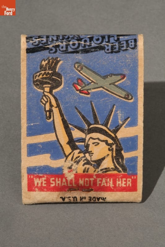 Patriotic themes could be found on many everyday objects during the Second World War. This matchbook depicts the Statue of Liberty and reminded Americans about their commitment to the war effort.