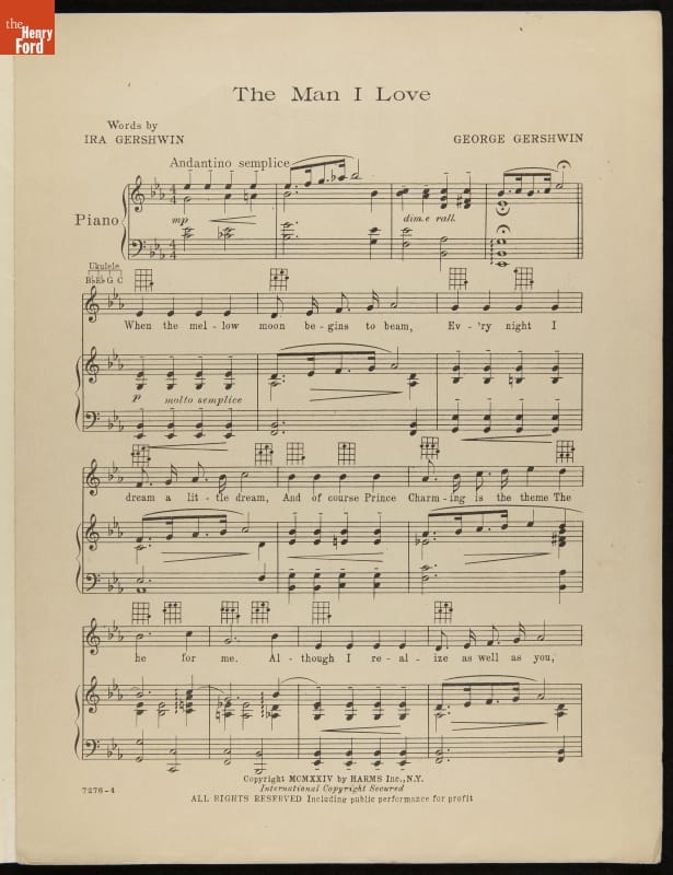 Music Sheet, "The Man I Love," 1924