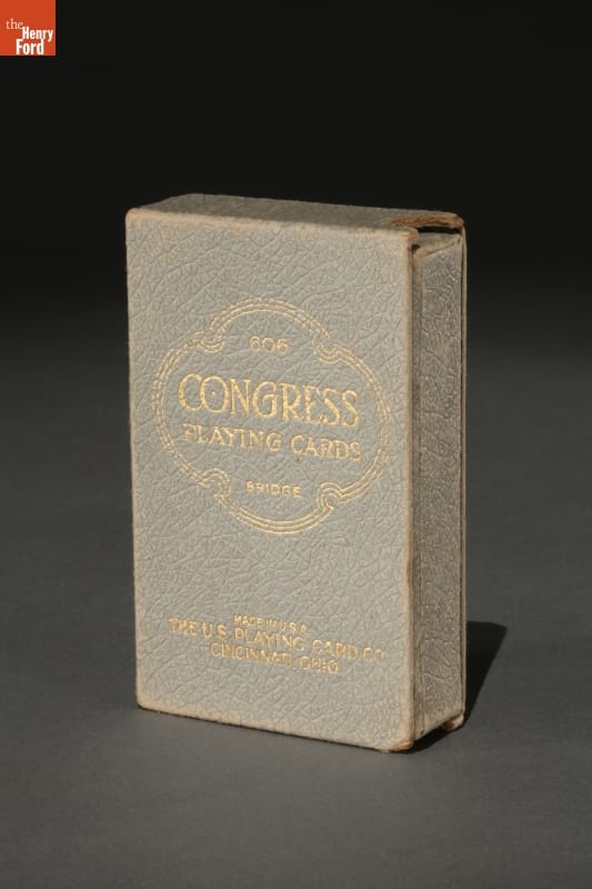 On front of box, in gold lettering: 606 / CONGRESS / PLAYING CARDS / BRIDGE/ MADE IN U.S.A. / THE U. S. PLAYING CARD CO. / CINCINNATI, OHIO