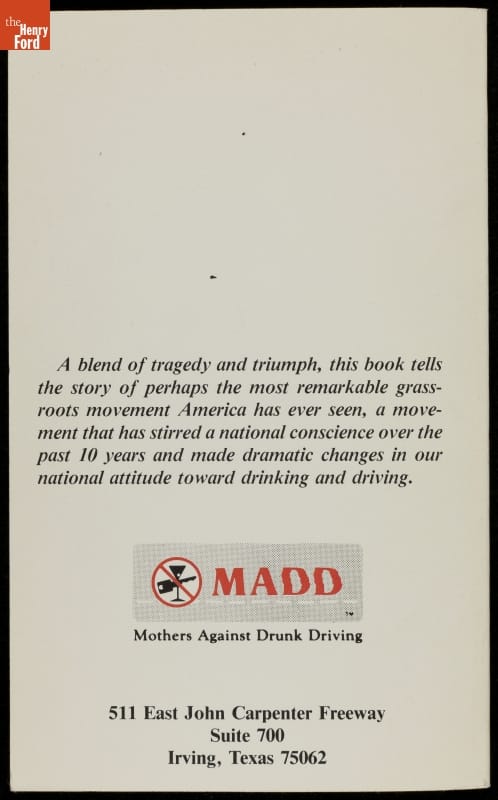 On front cover: AMERICA / GETS / MADD! / The story of / Mothers Against Drunk Driving, / the grassroots anti-drunk driving / movement that swept... / and is still sweeping the nation.