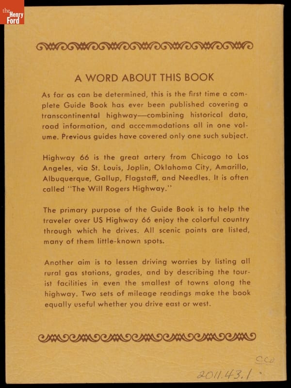 Route 66 was a federal highway from Chicago to Los Angeles, established in 1926. This 1946 guidebook was the first to encourage tourism along the route.